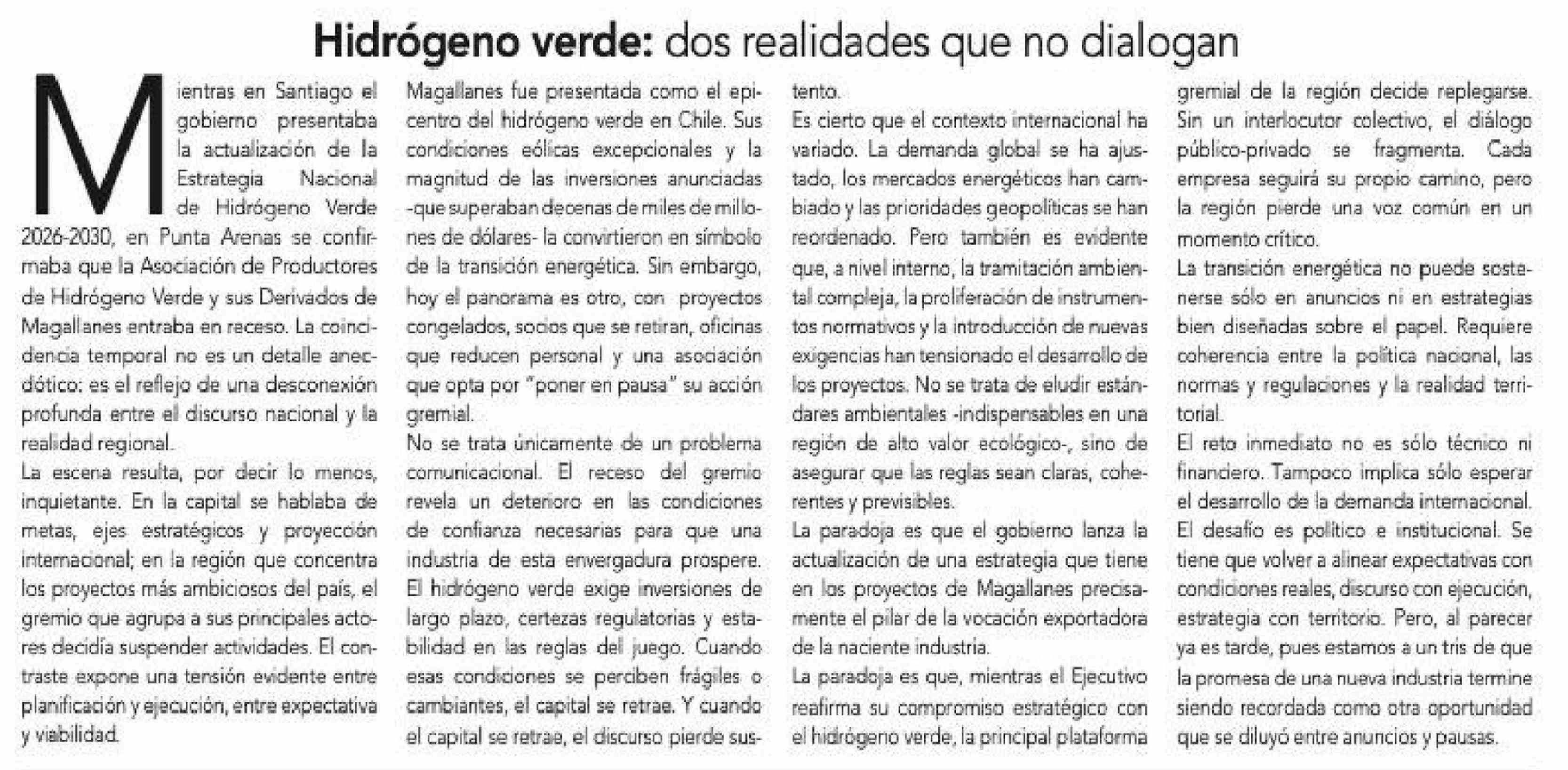 Fecha: 04-03-2026 Sector: Editorial Región: Región de Magallanes y de la Antártica Chilena