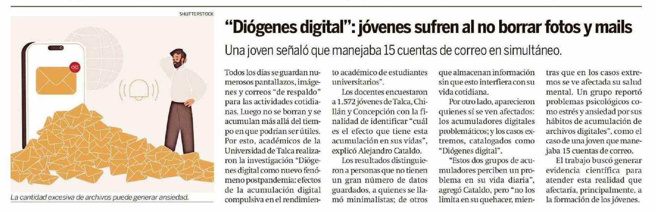 | Título: | "Diógenes digital": jóvenes sufren al no borrar fotos y mails |