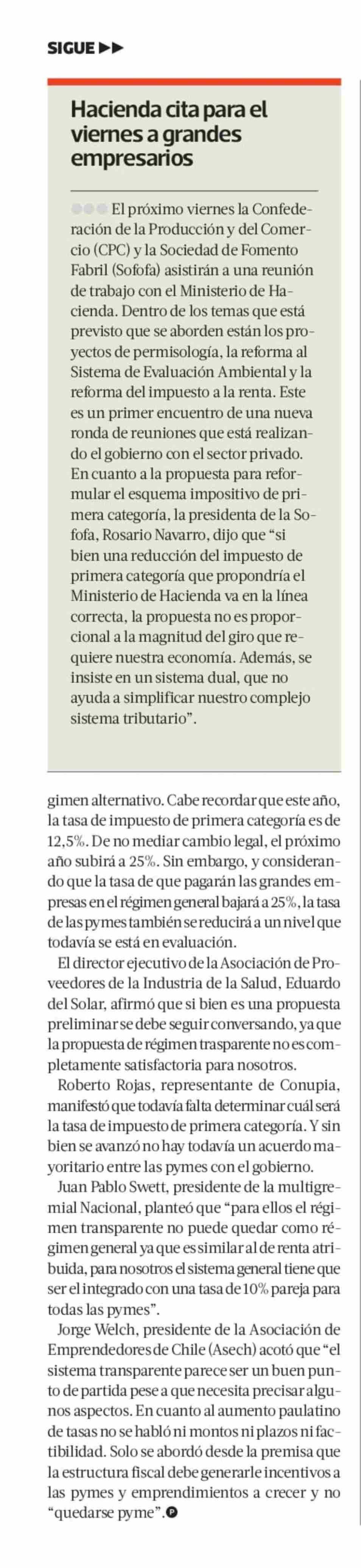 Expertos tributarios plantean dudas y críticas al nuevo esquema de tributación para grandes empresas propuesto por Hacienda 27-11-2024 La Tercera |
