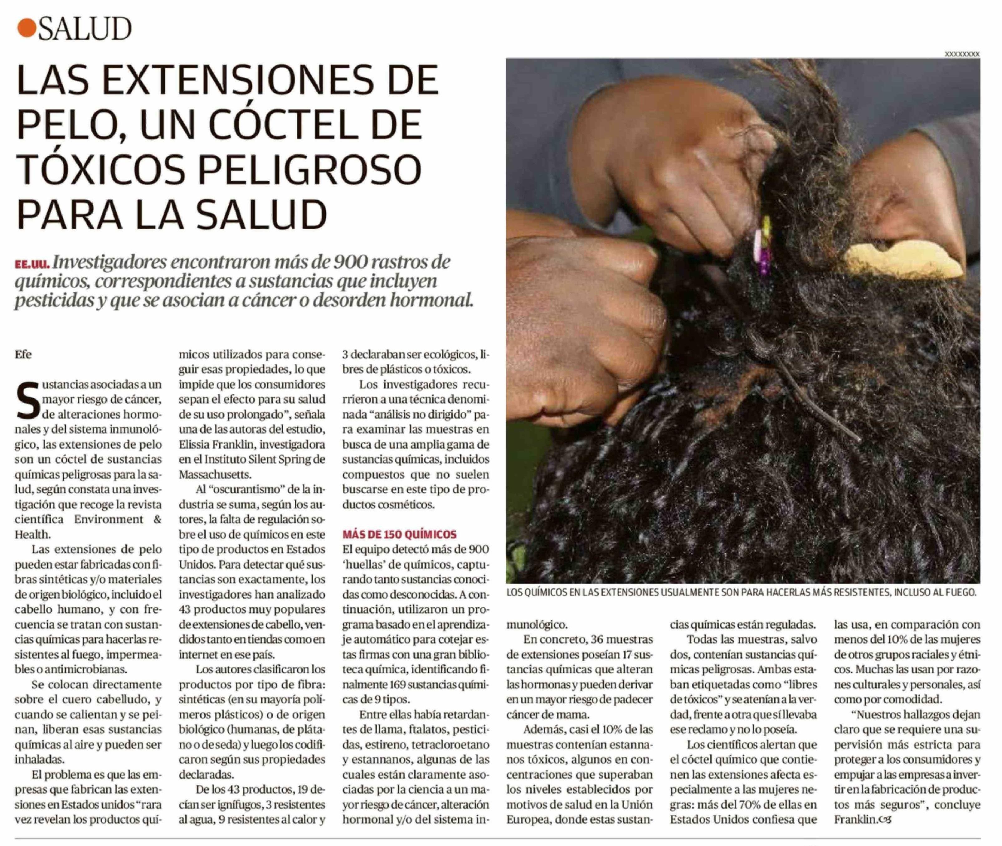 | Título: | LAS EXTENSIONES DE PELO, UN CÓCTEL DE TÓXICOS PELIGROSO PARA LA SALUD |