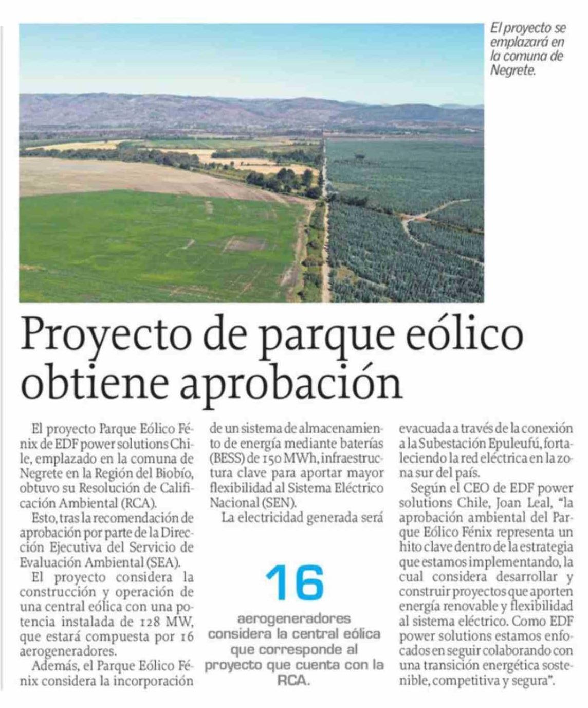 Proyecto de parque eólico obtiene aprobación 08-03-2026 El Sur |