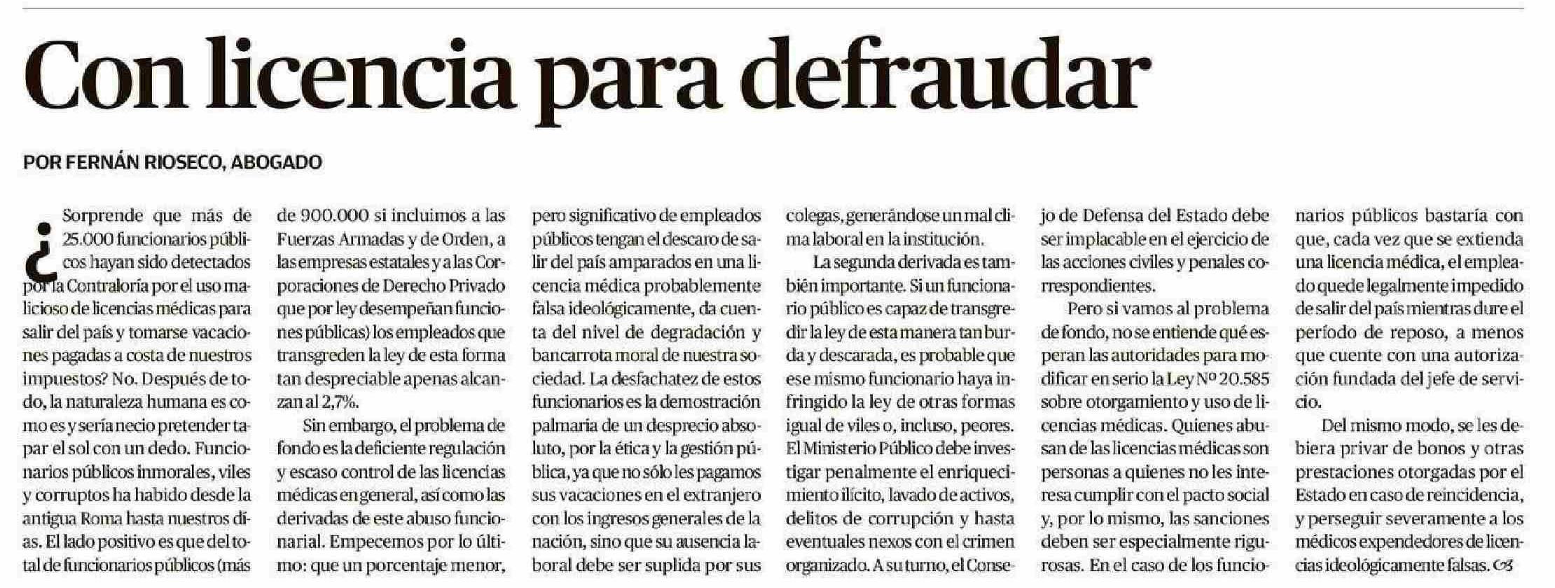 Columnas de Opinión: Con licencia para Efraudar 22-05-2025 El Mercurio de Valparaíso |