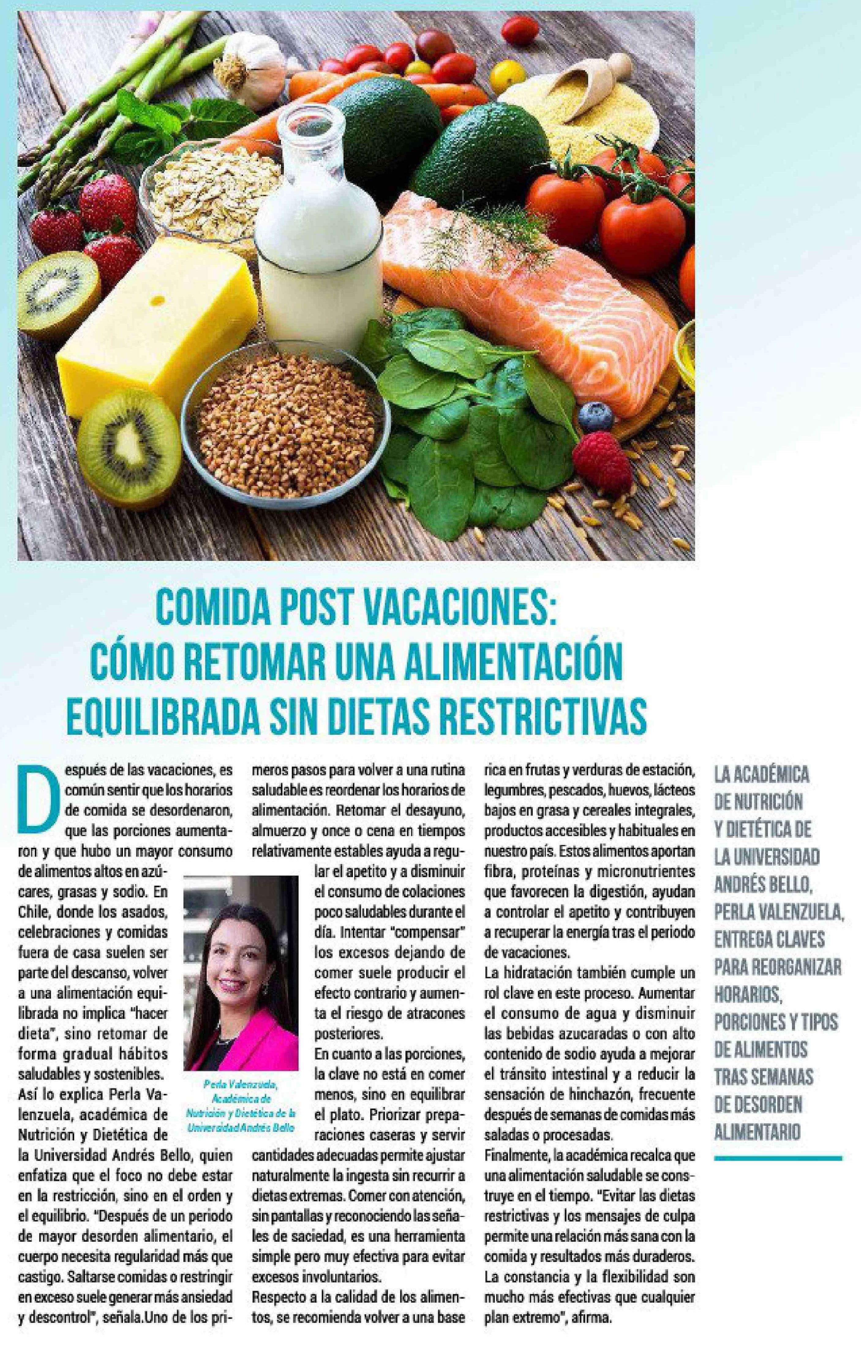 COMIDA POST VACACIONES: CÓMO RETOMAR UNA ALIMENTACIÓN EQUILIBRADA SIN DIETAS RESTRICTIVAS 22-02-2026 El Rancagüino |