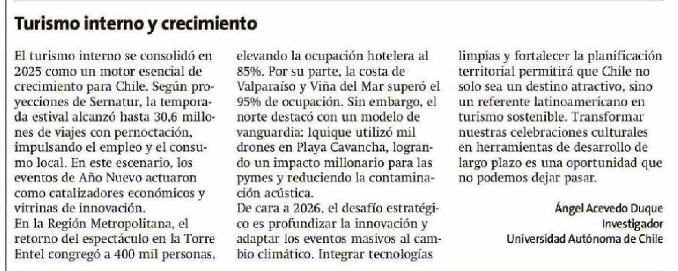 Cartas: Turismo interno y crecimiento 07-01-2026 La Estrella de Valparaíso |