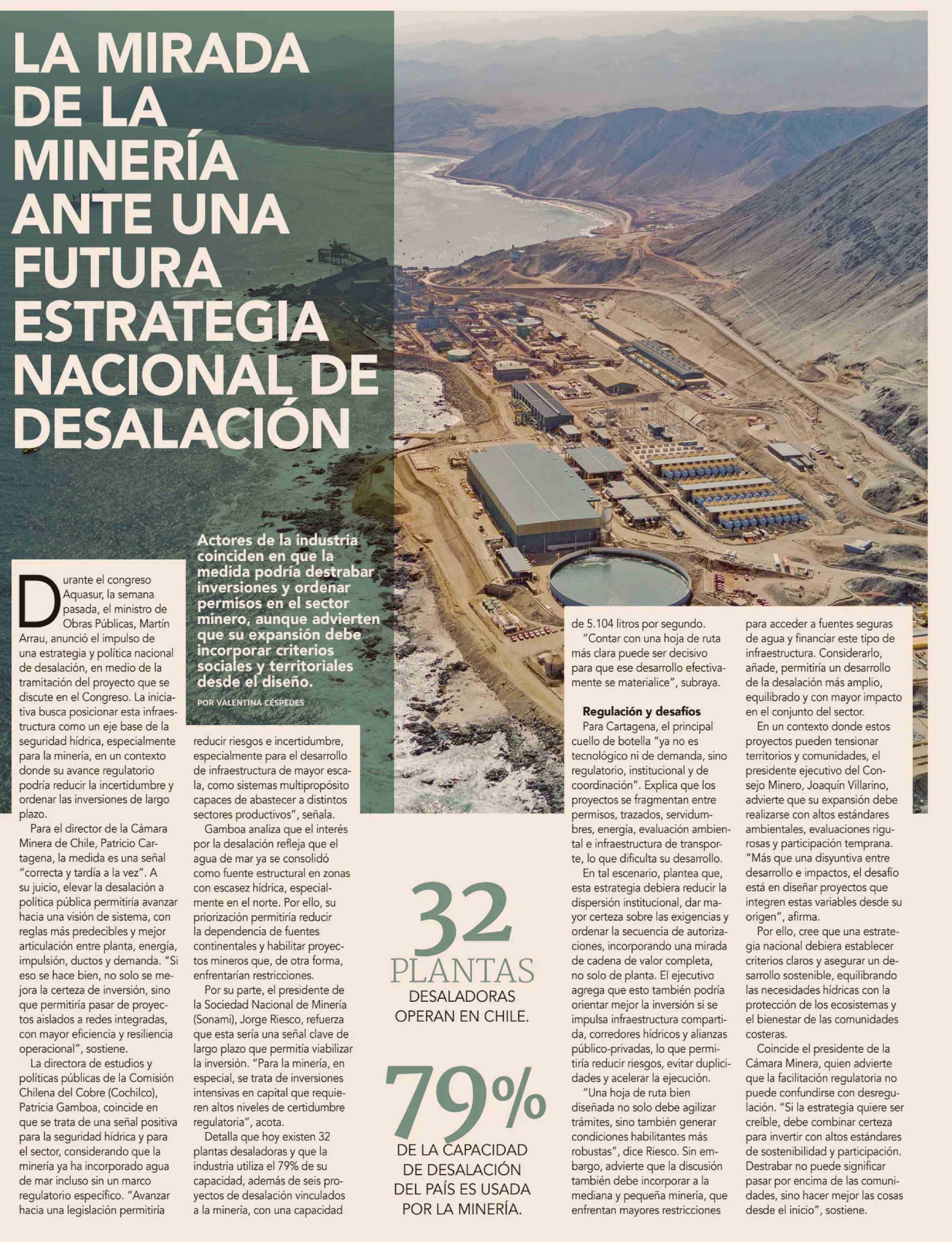 LA MIRADA DE LA MINERÍA ANTE UNA FUTURA ESTRATEGIA NACIONAL DE DESALACIÓN 27-03-2026 Diario Financiero |