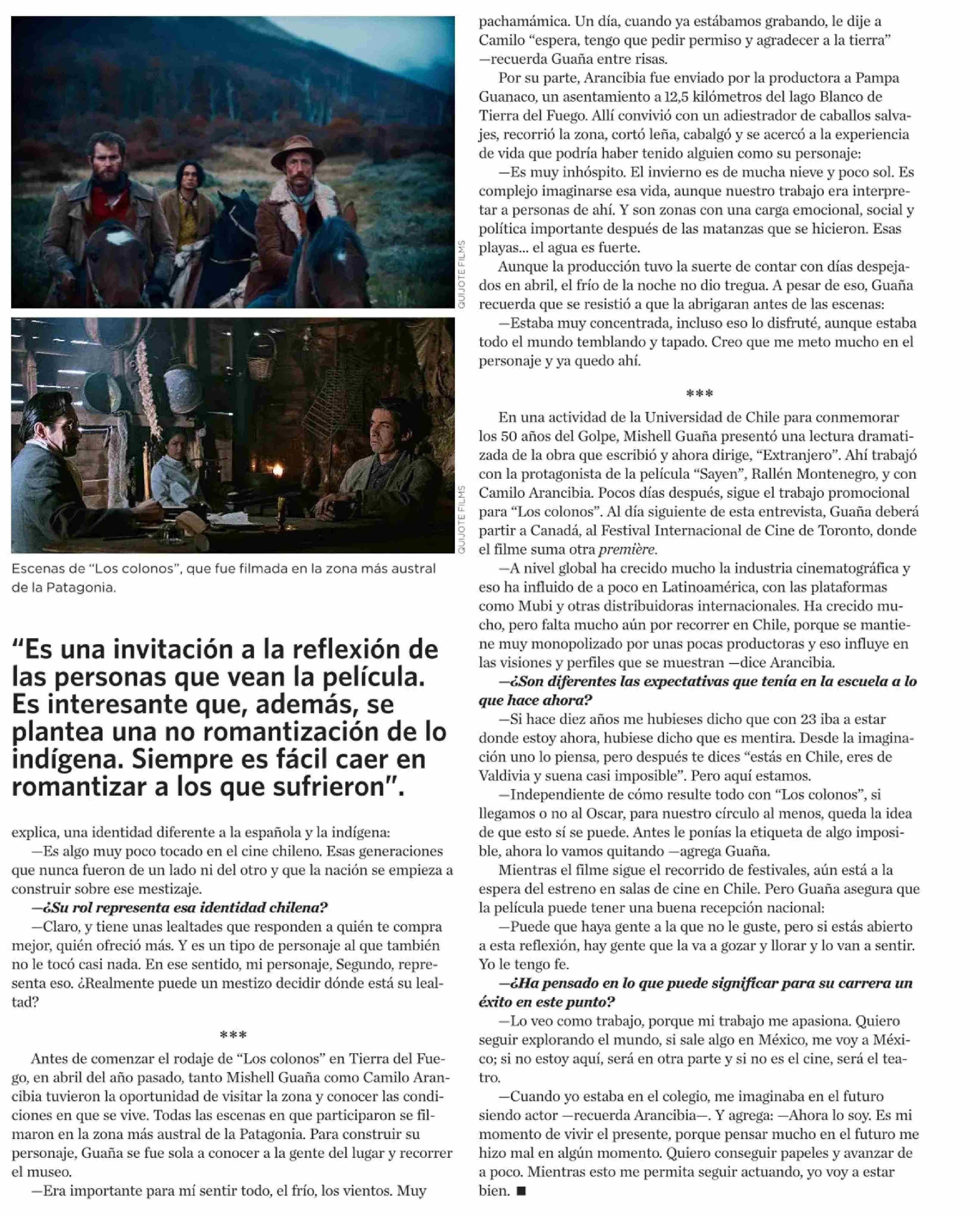 El camino de Mishell Guaña y Camilo Arancibia en “Los colonos” 19-09-2023 El Mercurio |