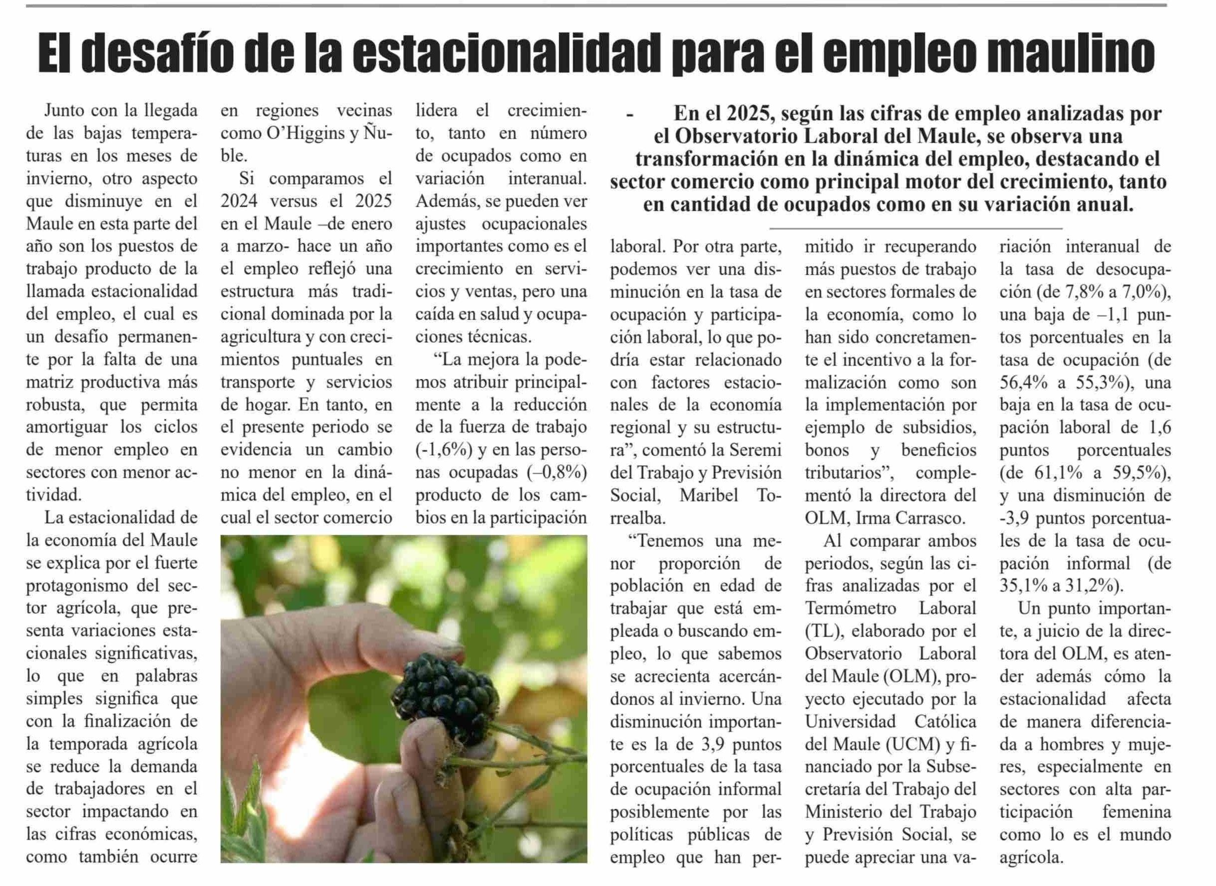 | Título: | El desafío de la estacionalidad para el empleo Maulino |
