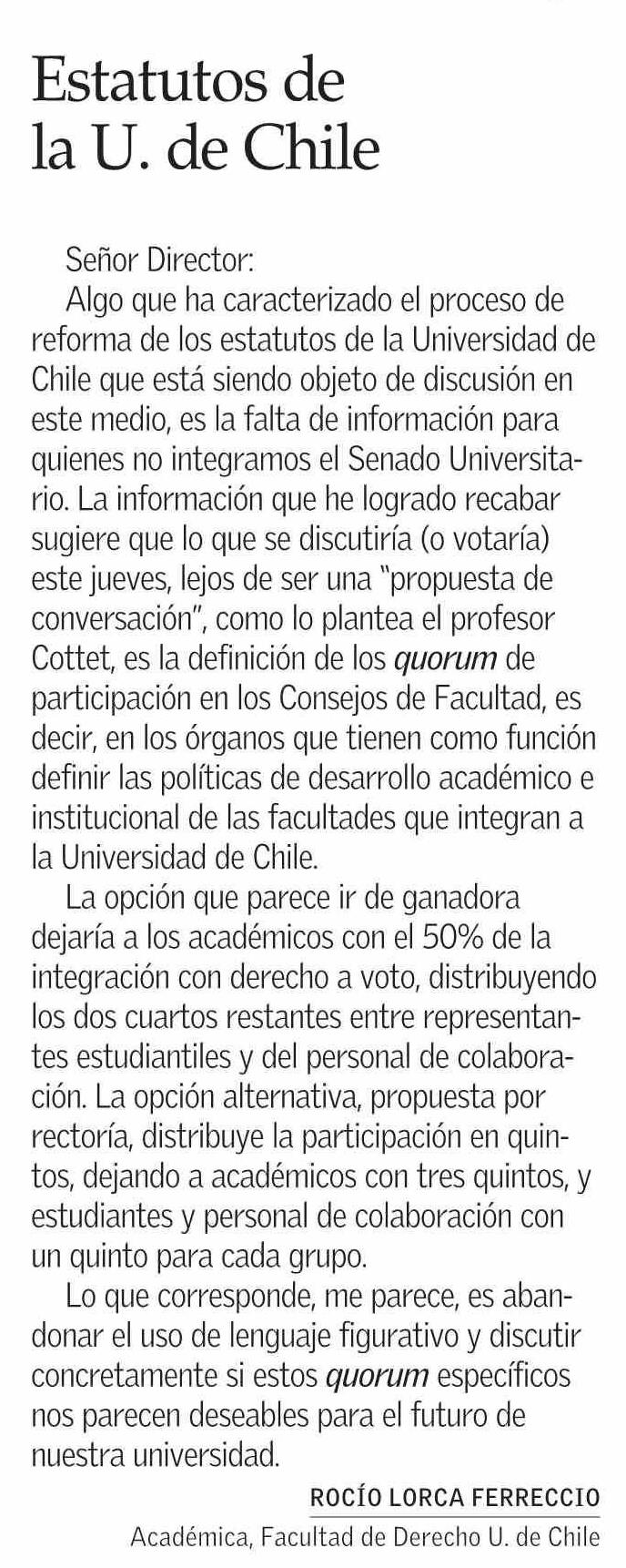 CARTAS: Estatutos de la U. de Chile 21-05-2025 El Mercurio |