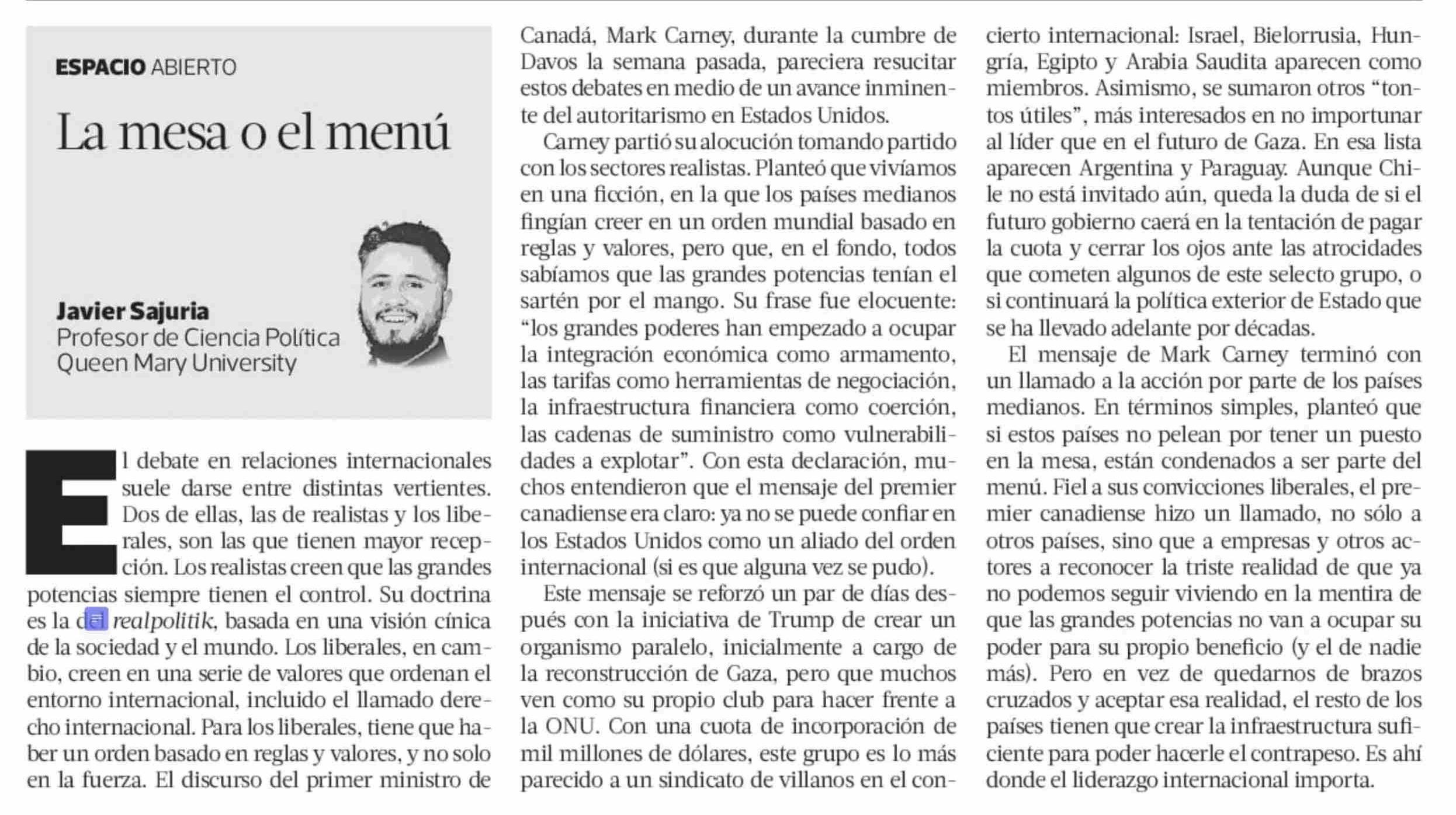Columnas de Opinión: La mesa o el menú 27-01-2026 La Tercera |