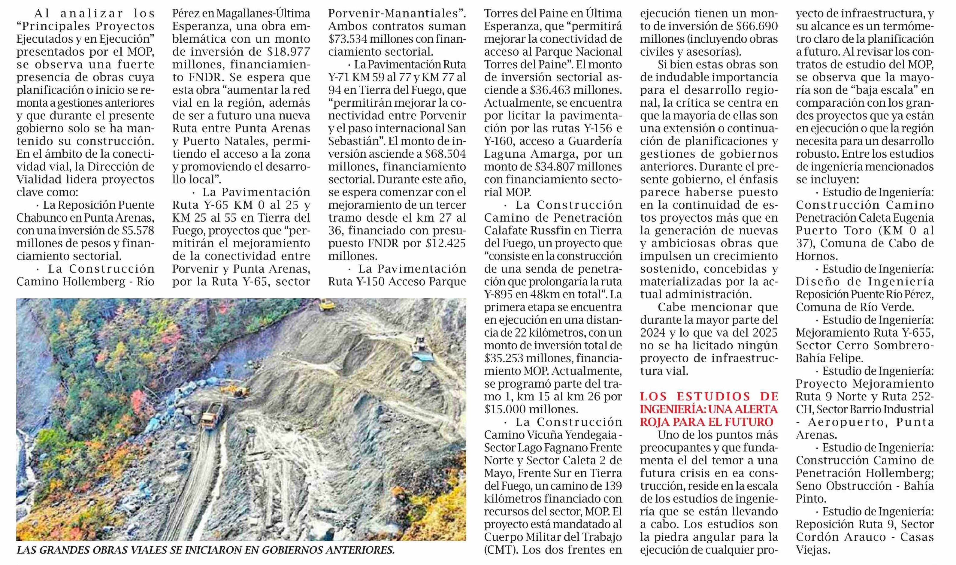 Falta de nuevos estudios del MOP hace peligrar la inversión pública en la región 08-06-2025 El Pingüino |