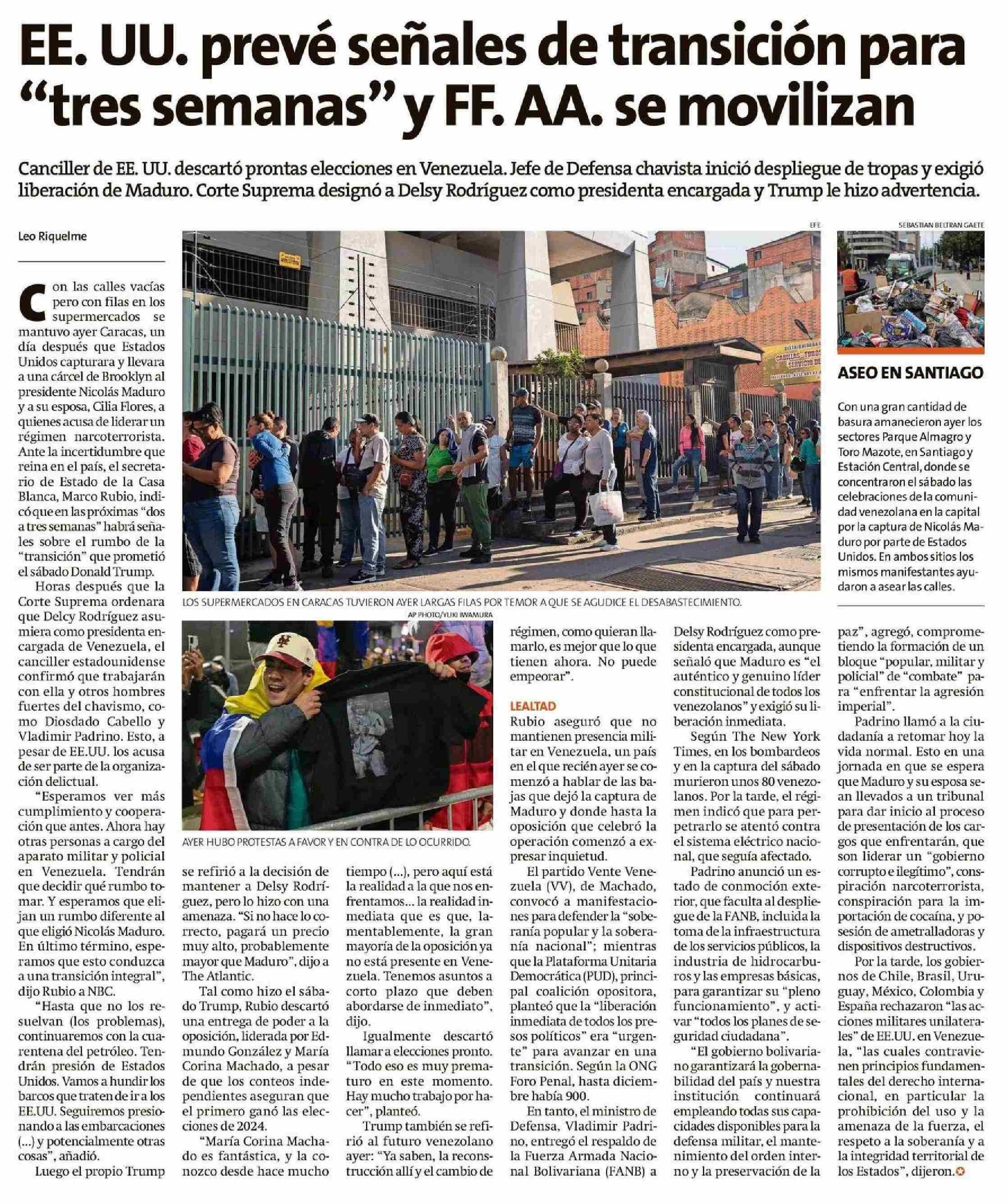 Título: EE. UU. prevé señales de transición para "tres semanas" y FF. AA. se movilizan