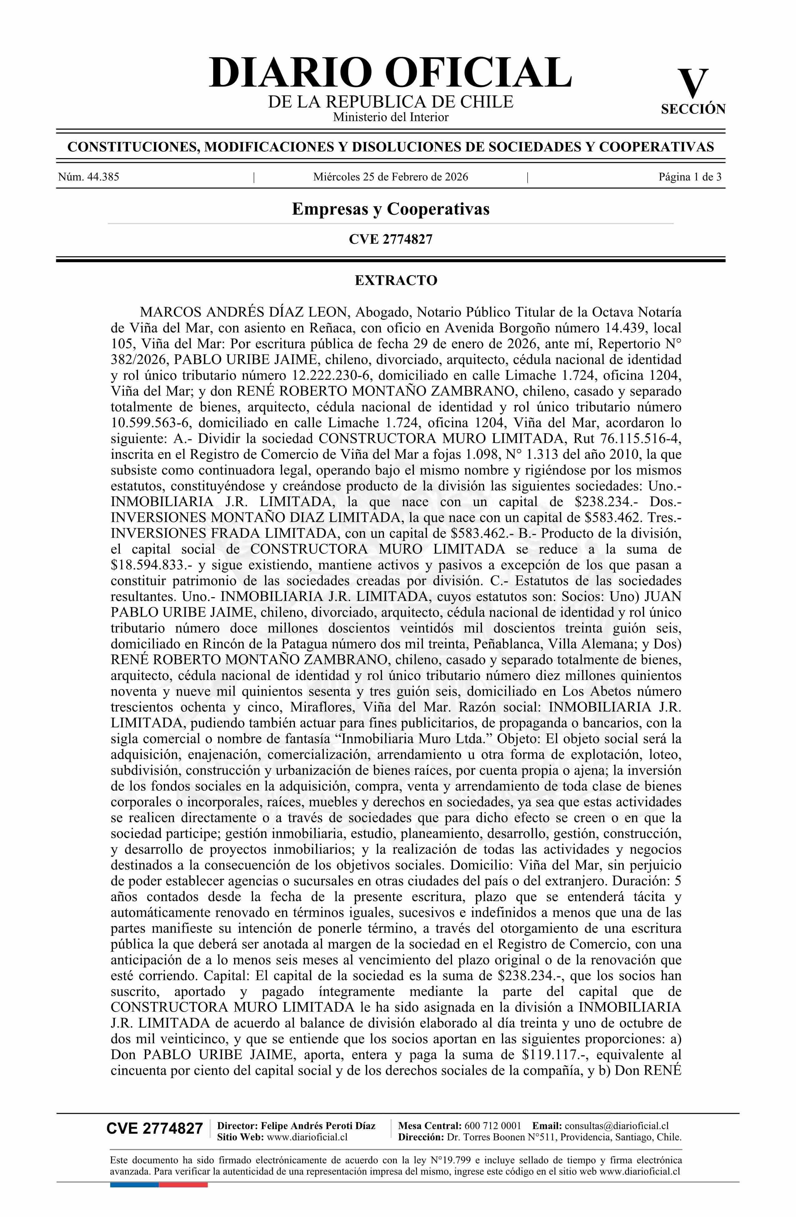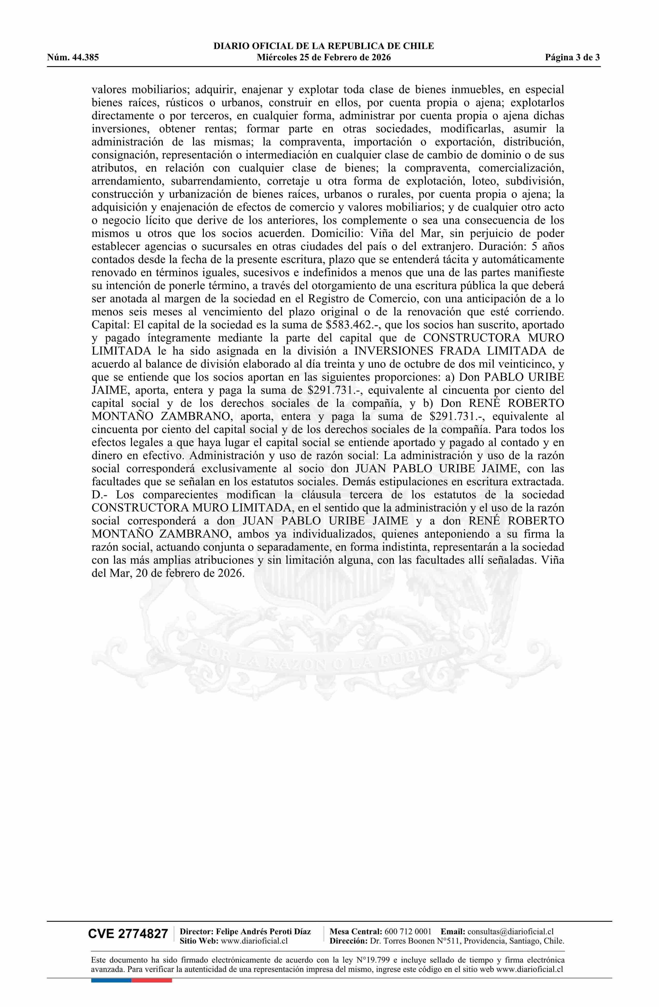 CONSTRUCTORA MURO LIMITADA 76.115.516-4 25-02-2026 Diario Oficial Edición Electrónica |