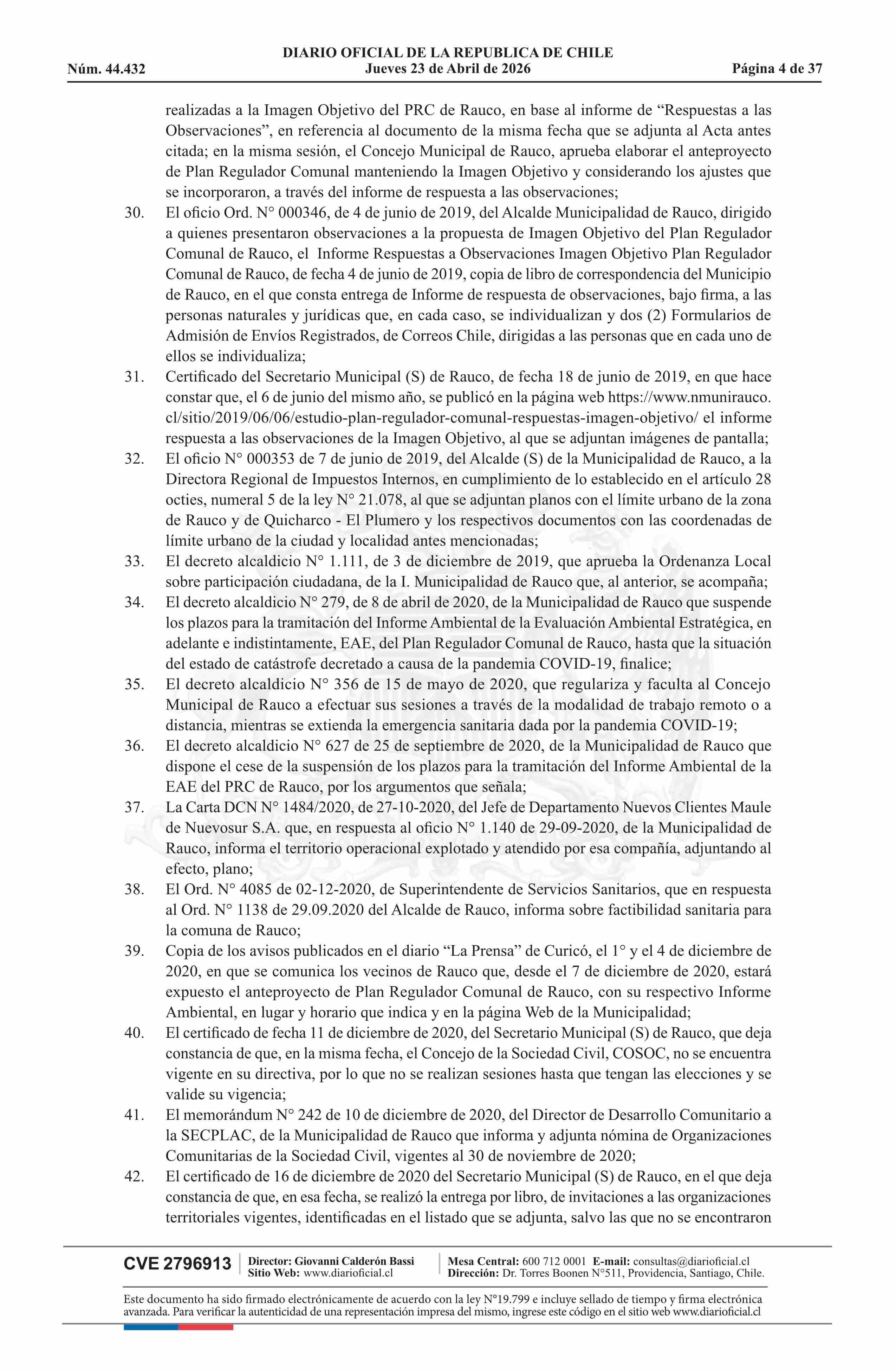 Fuente: Diario Oficial Edición Electrónica (Diario Oficial de Chile - 1 Normas Generales) Página(s): 52-88