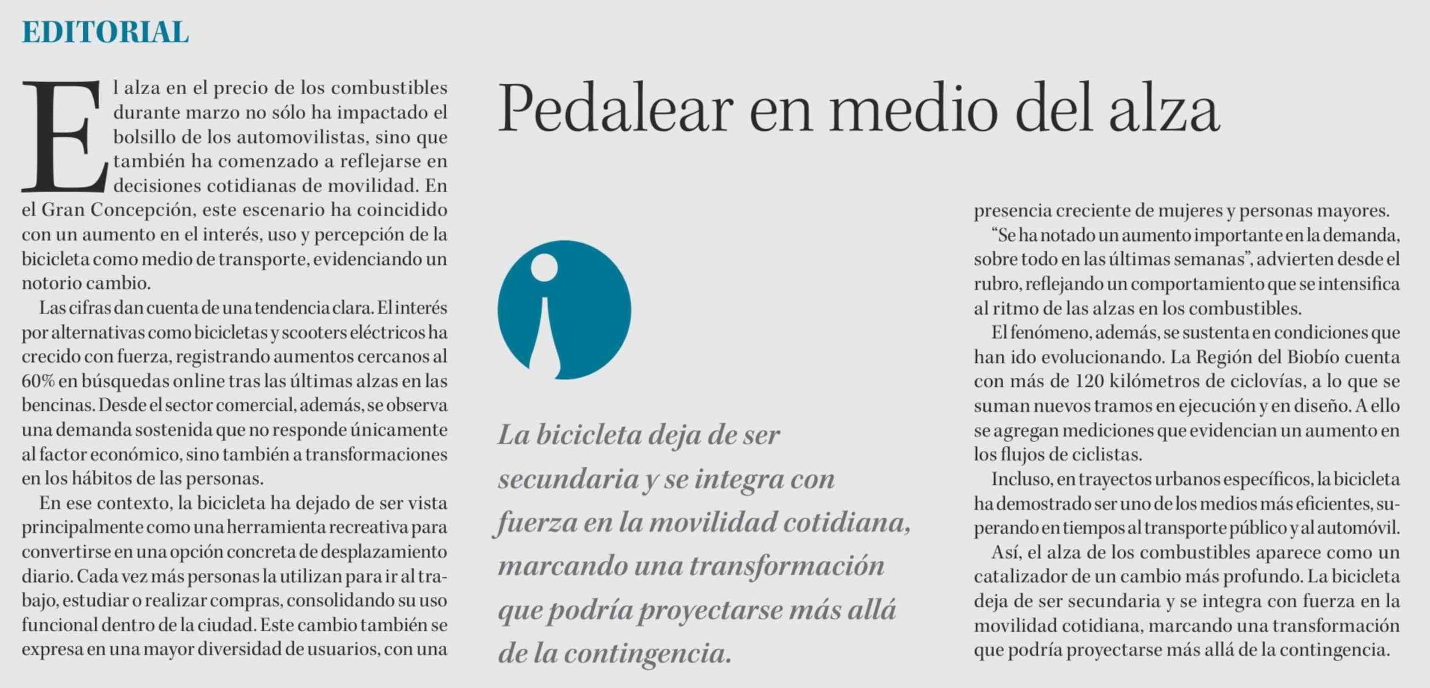 Editorial: Pedalear en medio del alza 31-03-2026 Diario Concepción |