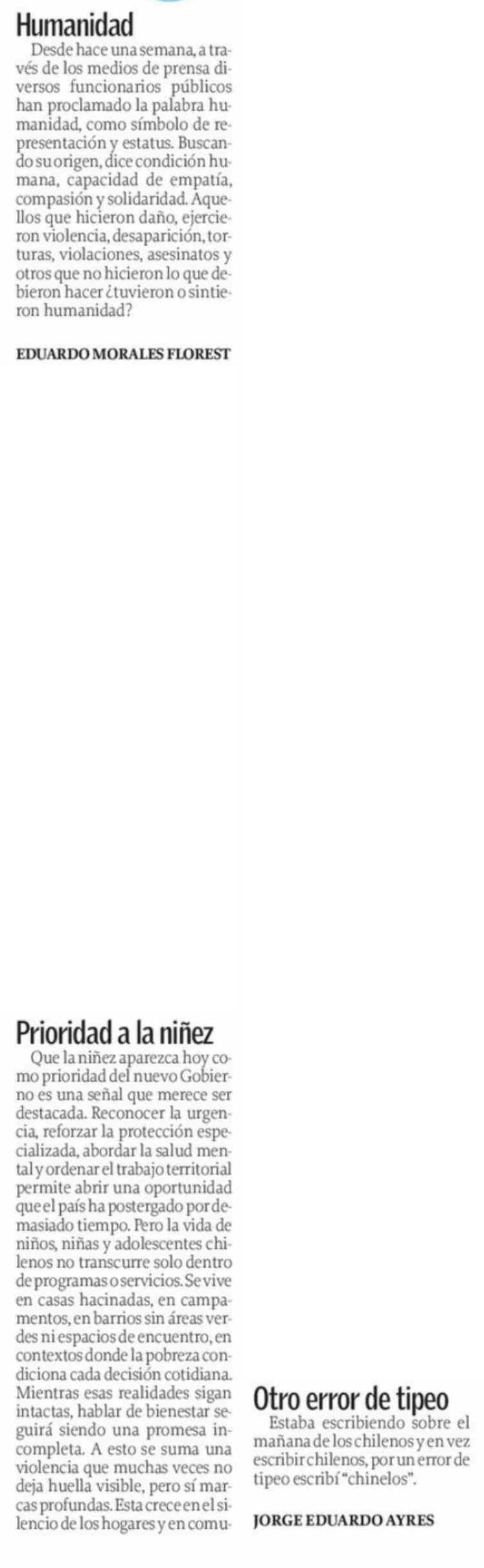 CARTAS: Prioridad a la niñez 11-03-2026 El Sur |