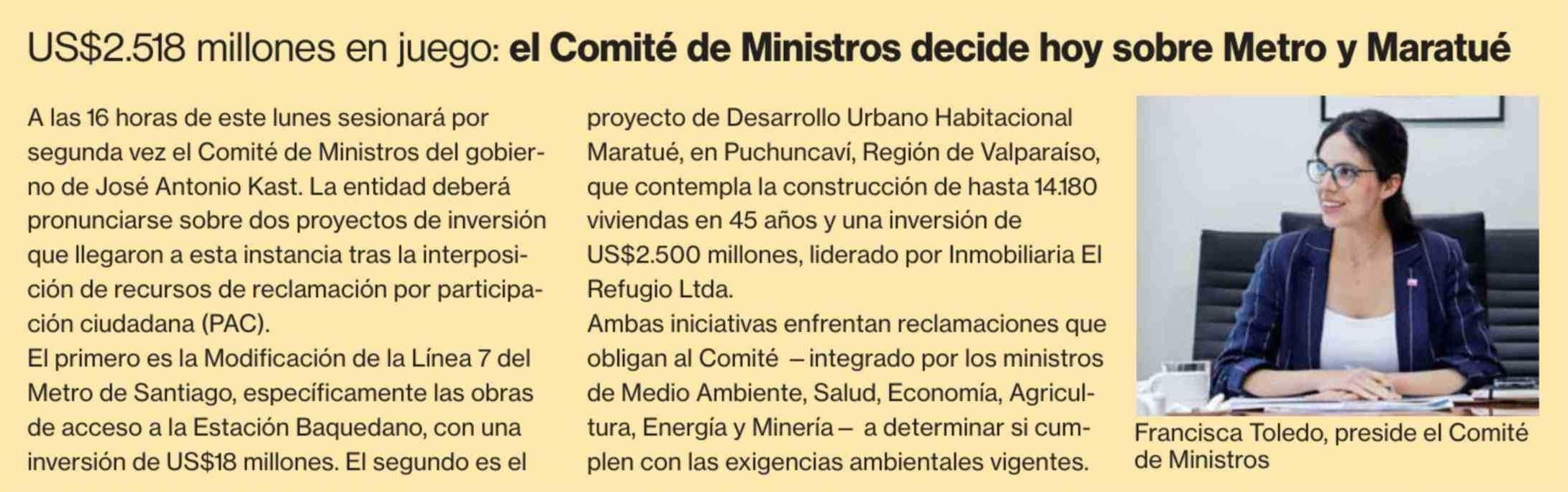 | Título: | US$2.518 millones en juego: el Comité de Ministros decide hoy sobre Metro y Maratué |