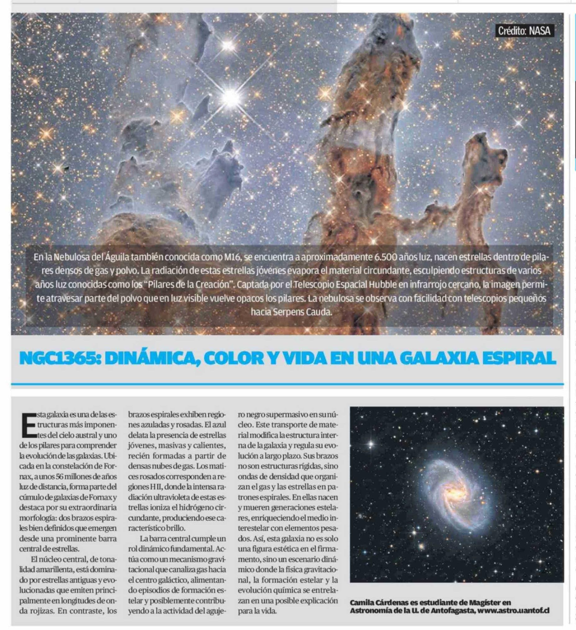 NGC1365: DINÁMICA, COLOR Y VIDA EN UNA GALAXIA ESPIRAL 01-03-2026 El Mercurio de Antofagasta |