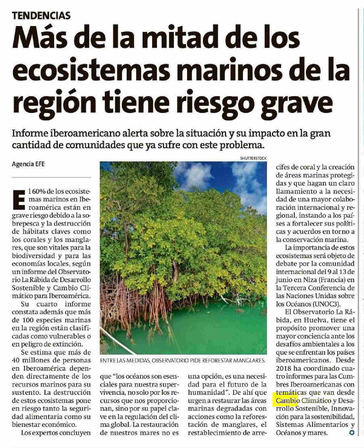 Más de la mitad de los ecosistemas marinos de la región tiene riesgo grave 07-06-2025 El Líder |