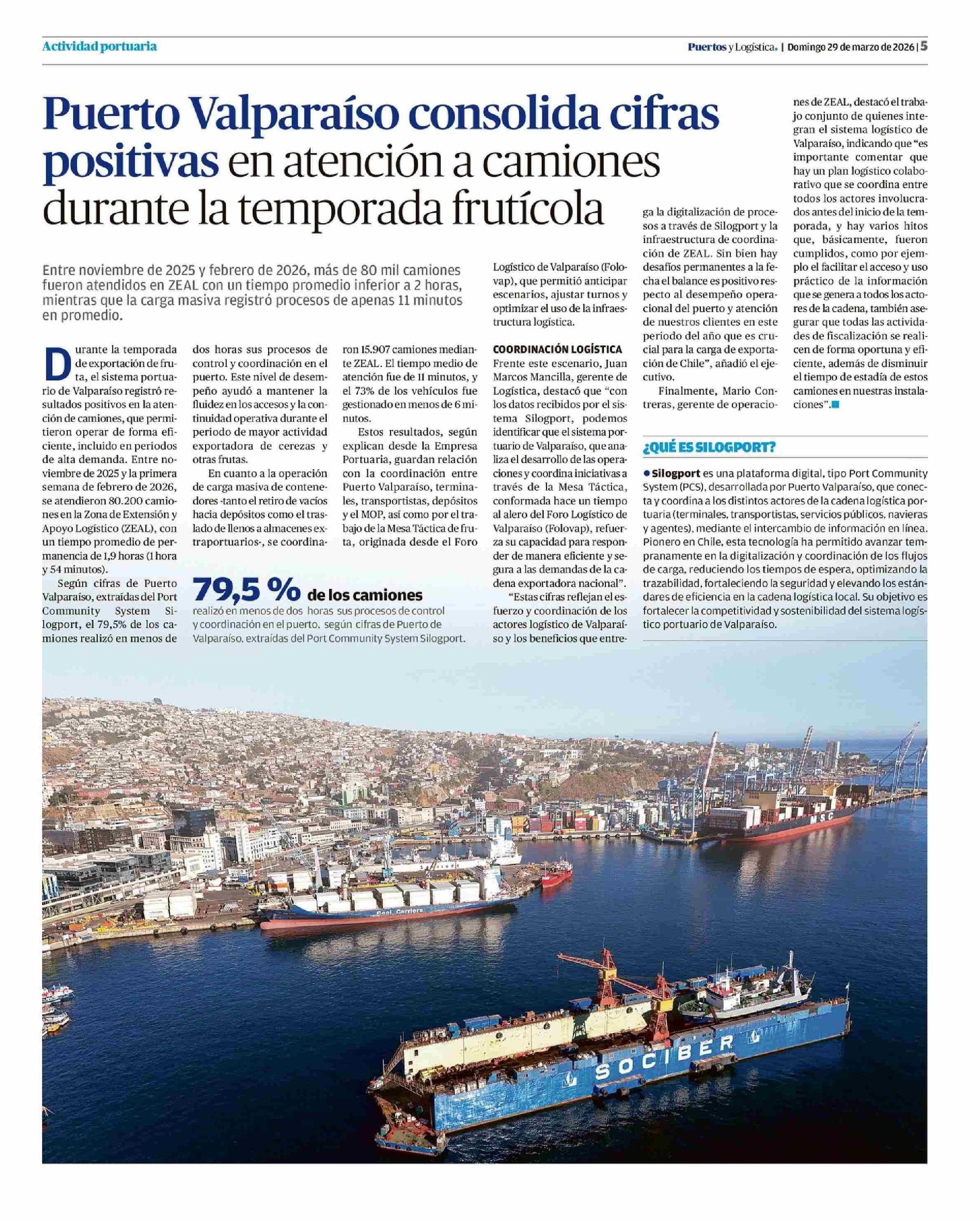 Puerto Valparaíso consolida cifras en atencion a camiones la temporada frutícola :: 29-03-2026 El Líder |