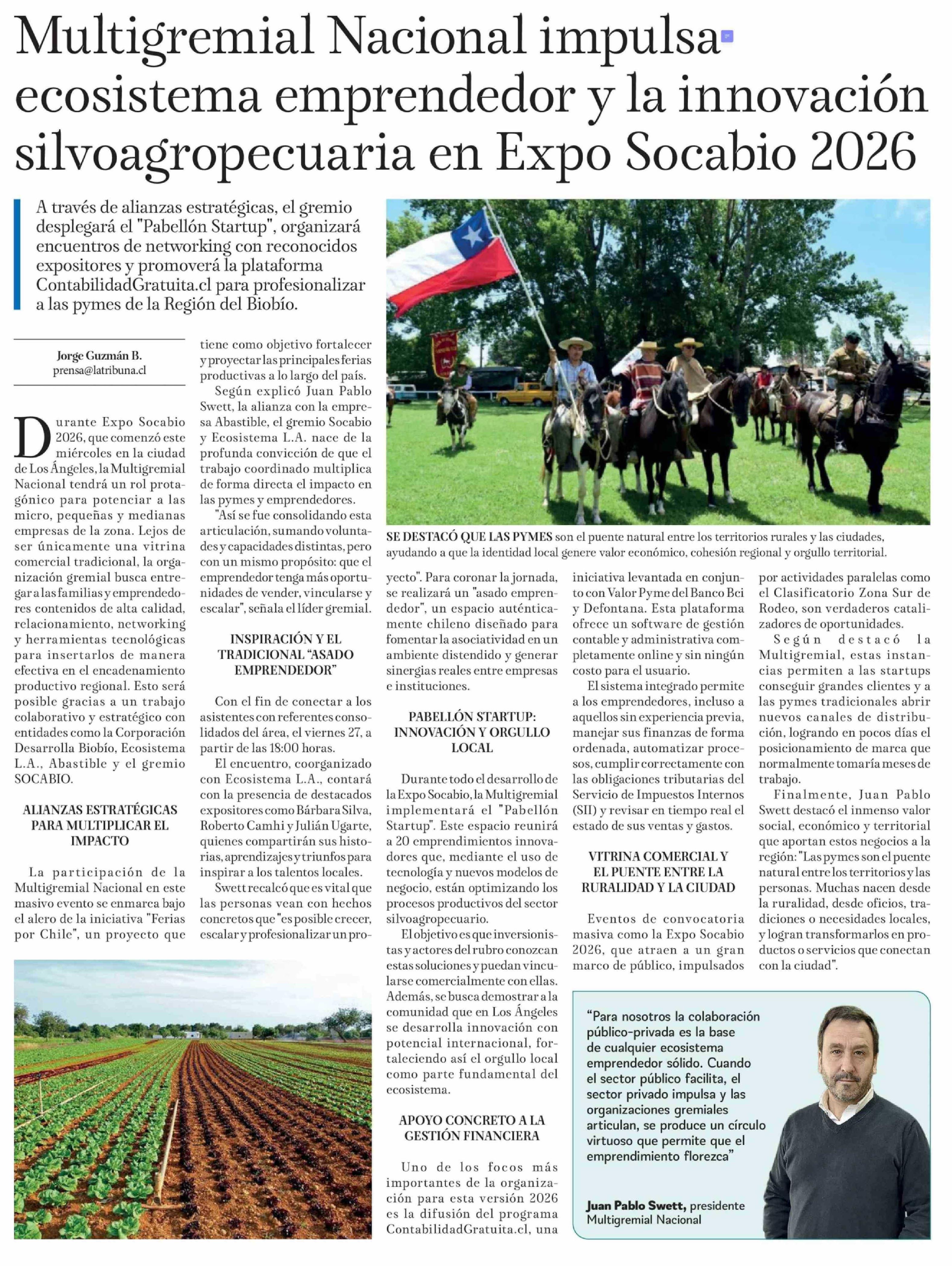 Título: Multigremial Nacional impulsa ecosistema emprendedor y la innovación silvoagropecuaria en Expo Socabio 2026