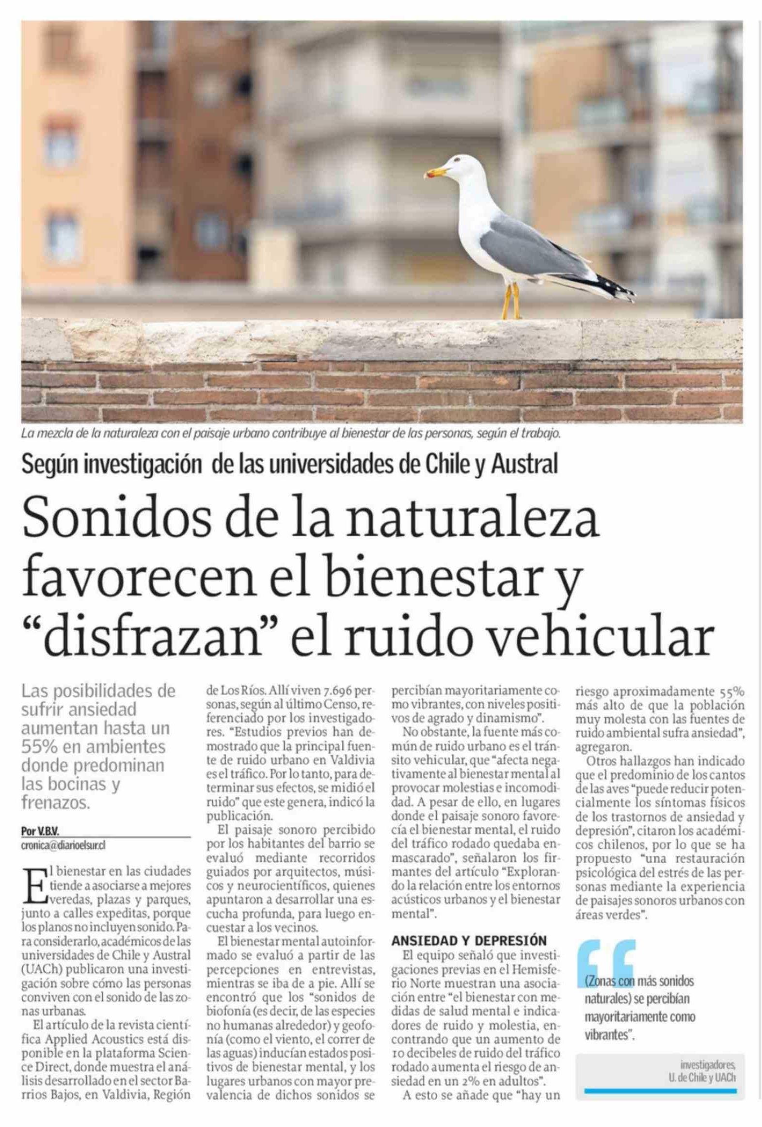 Título: Sonidos de la naturaleza favorecen el bienestar y "disfrazan" el ruido vehicular