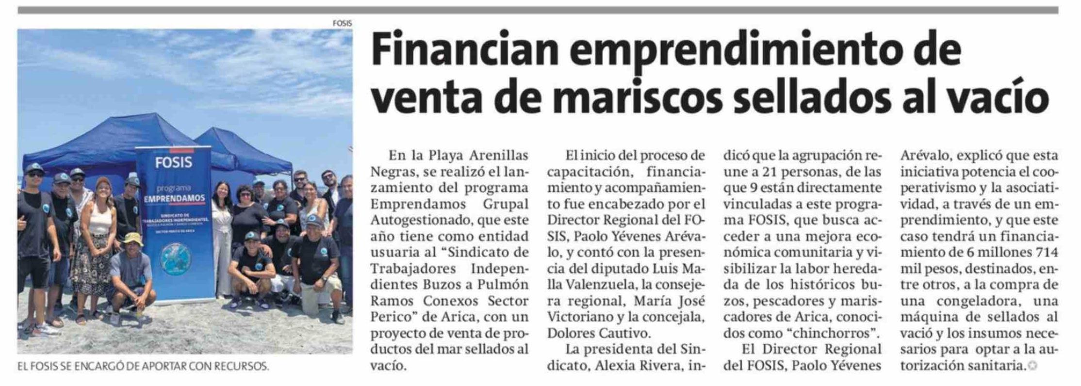Título: Financian emprendimiento de venta de mariscos sellados al vacío