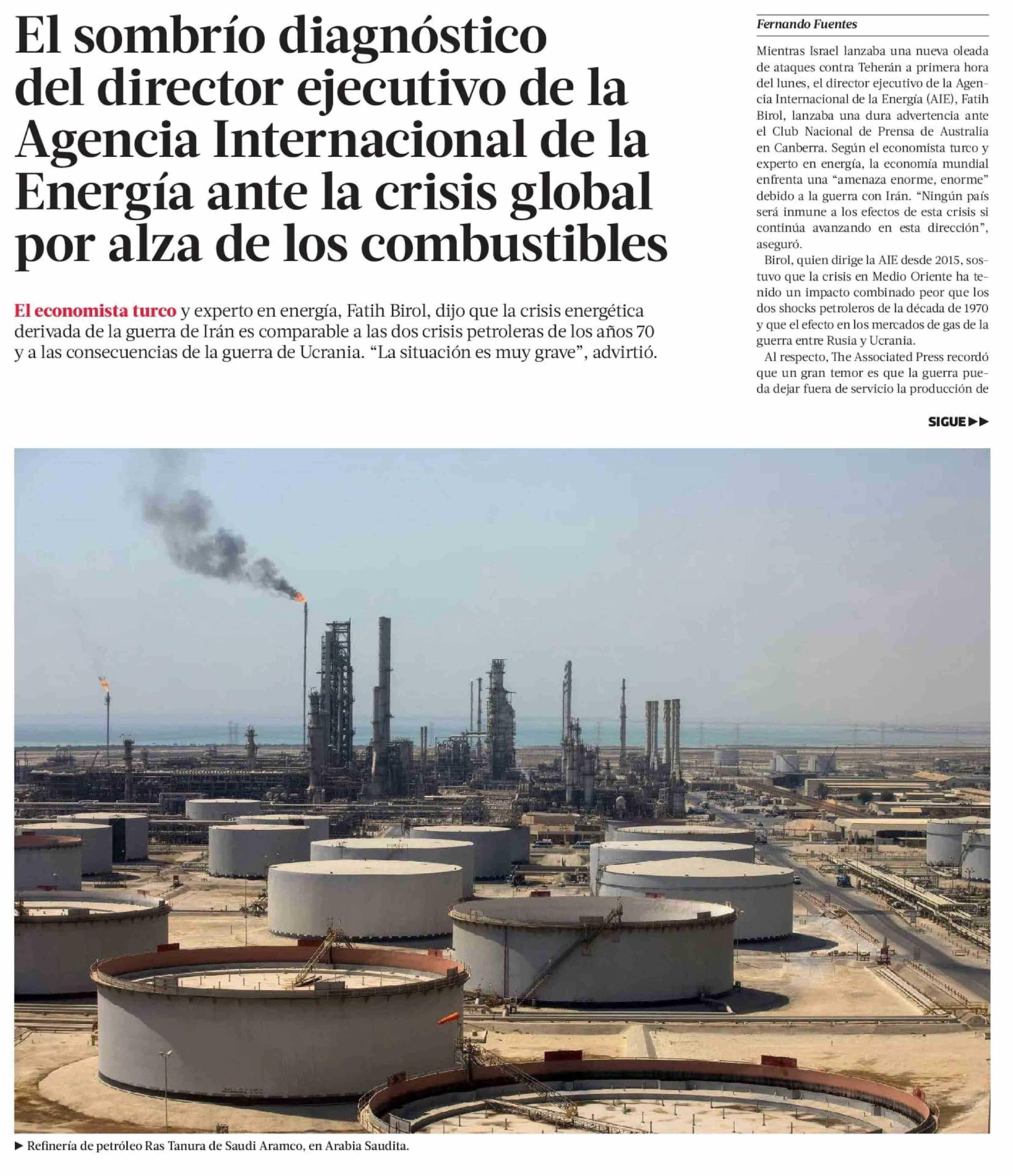 | Título: | El sombrío diagnóstico del director ejecutivo de la Agencia Internacional de la Energía ante la crisis global por alza de los combustibles |
