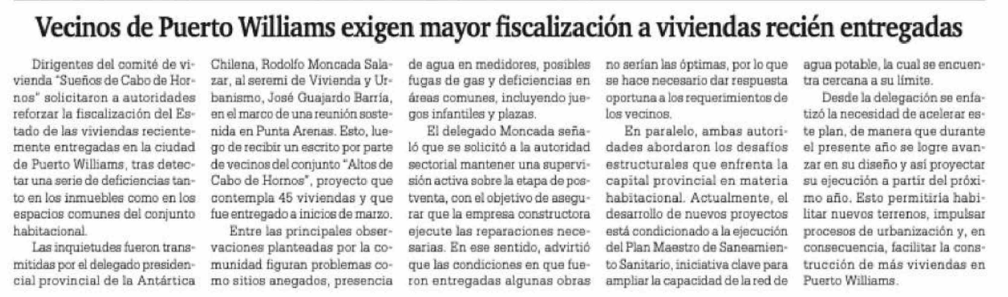 Título: Vecinos de Puerto Williams exigen mayor fiscalización a viviendas recién entregadas