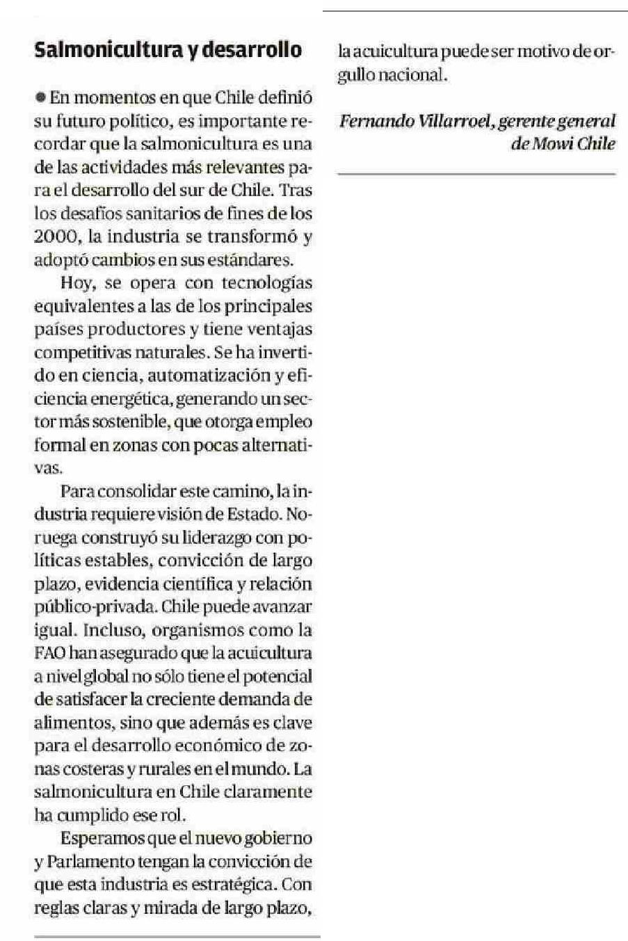 Cartas: Salmonicultura y desarrollo 10-01-2026 El Llanquihue |