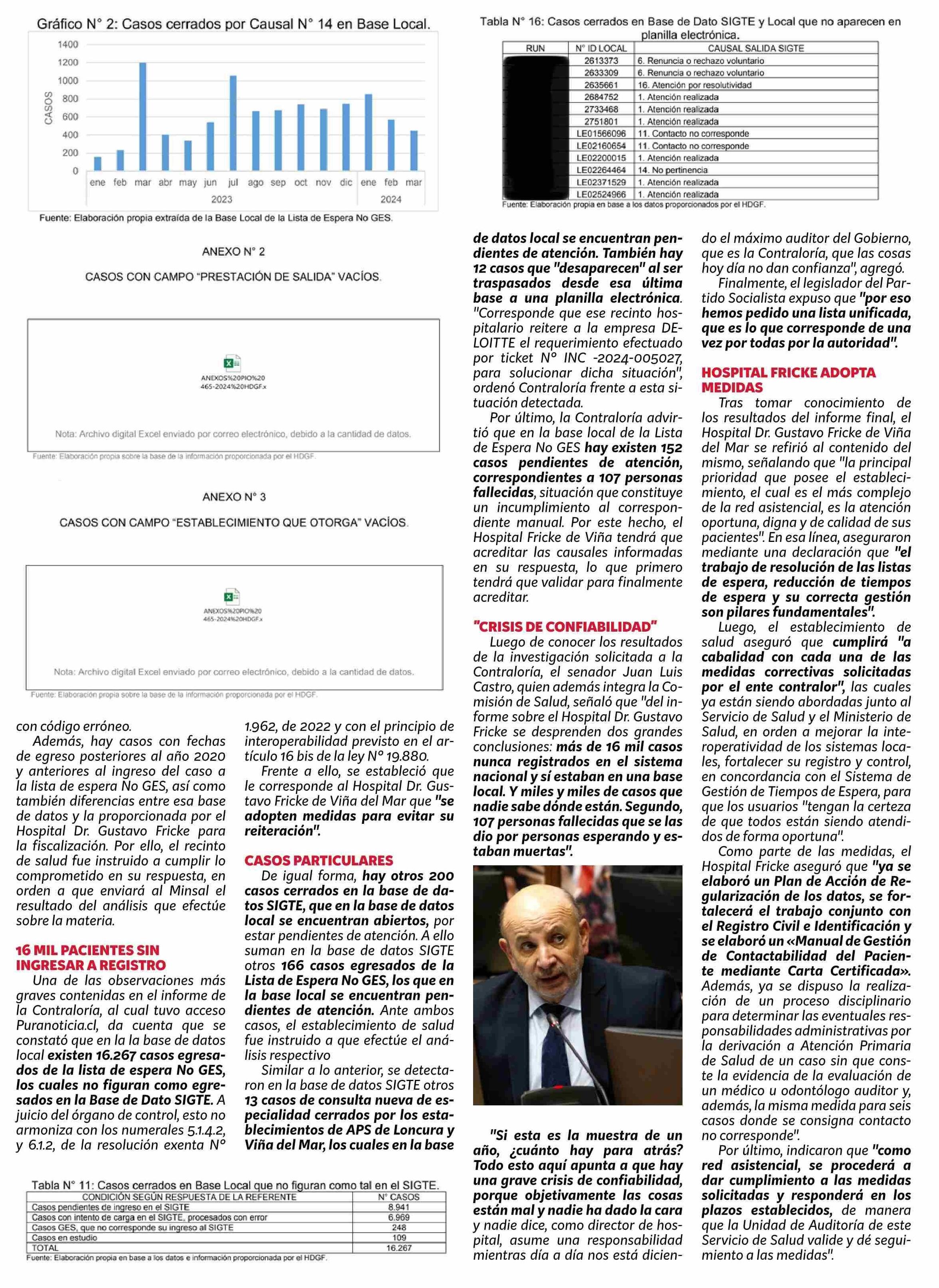 | Título: | 16 mil pacientes sin ingresar a registro nacional y más: Las irregularidades en listas de espera que detectó Contraloría en el Hospital Fricke |