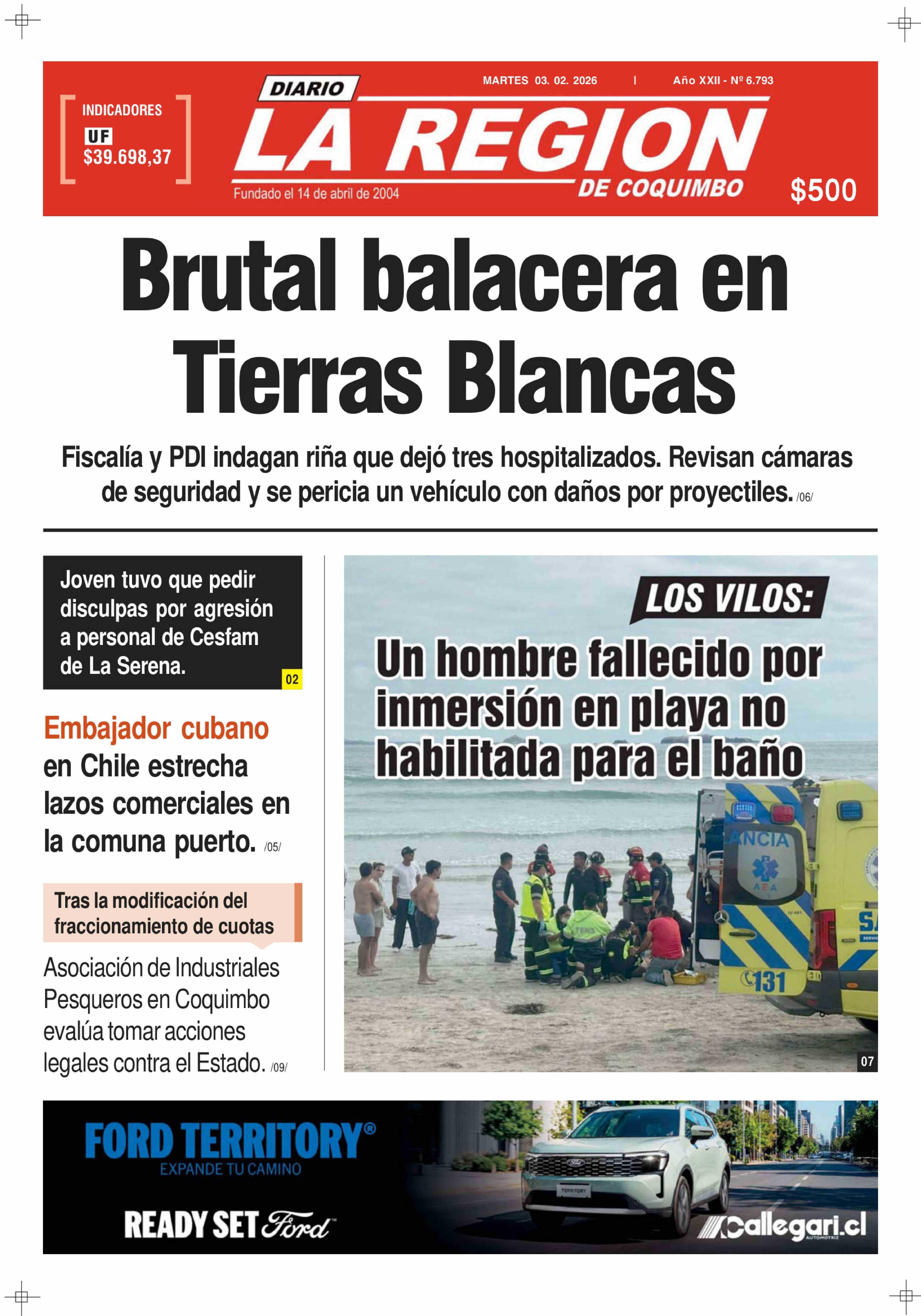 | Fecha: | 03-02-2026 | Sector: | Portada | Región: | Región de Coquimbo |