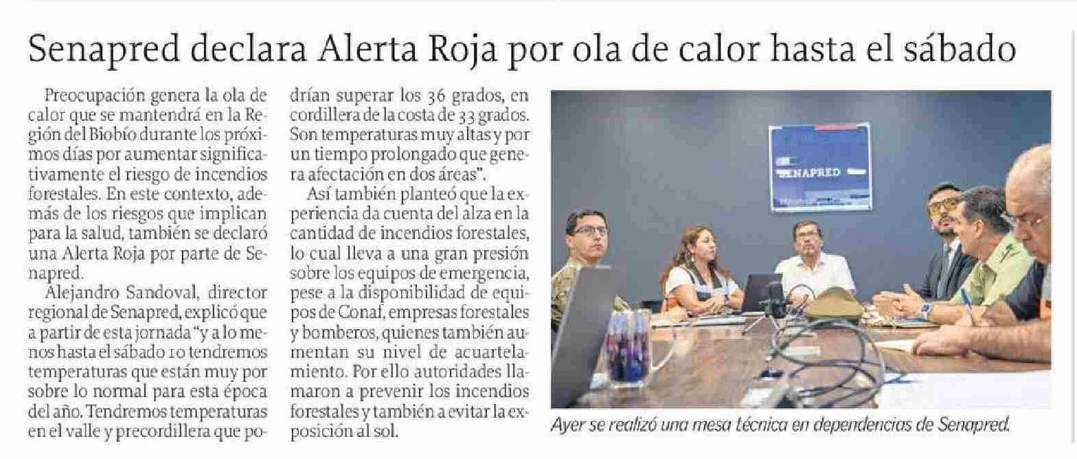 | Título: | Senapred declara Alerta Roja por ola de calor hasta el sábado |