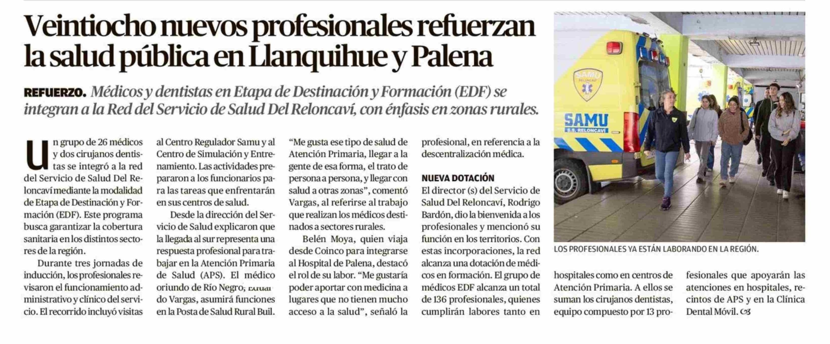 | Título: | Veintiocho nuevos profesionales refuerzan la salud pública en Llanquihue y Palena |