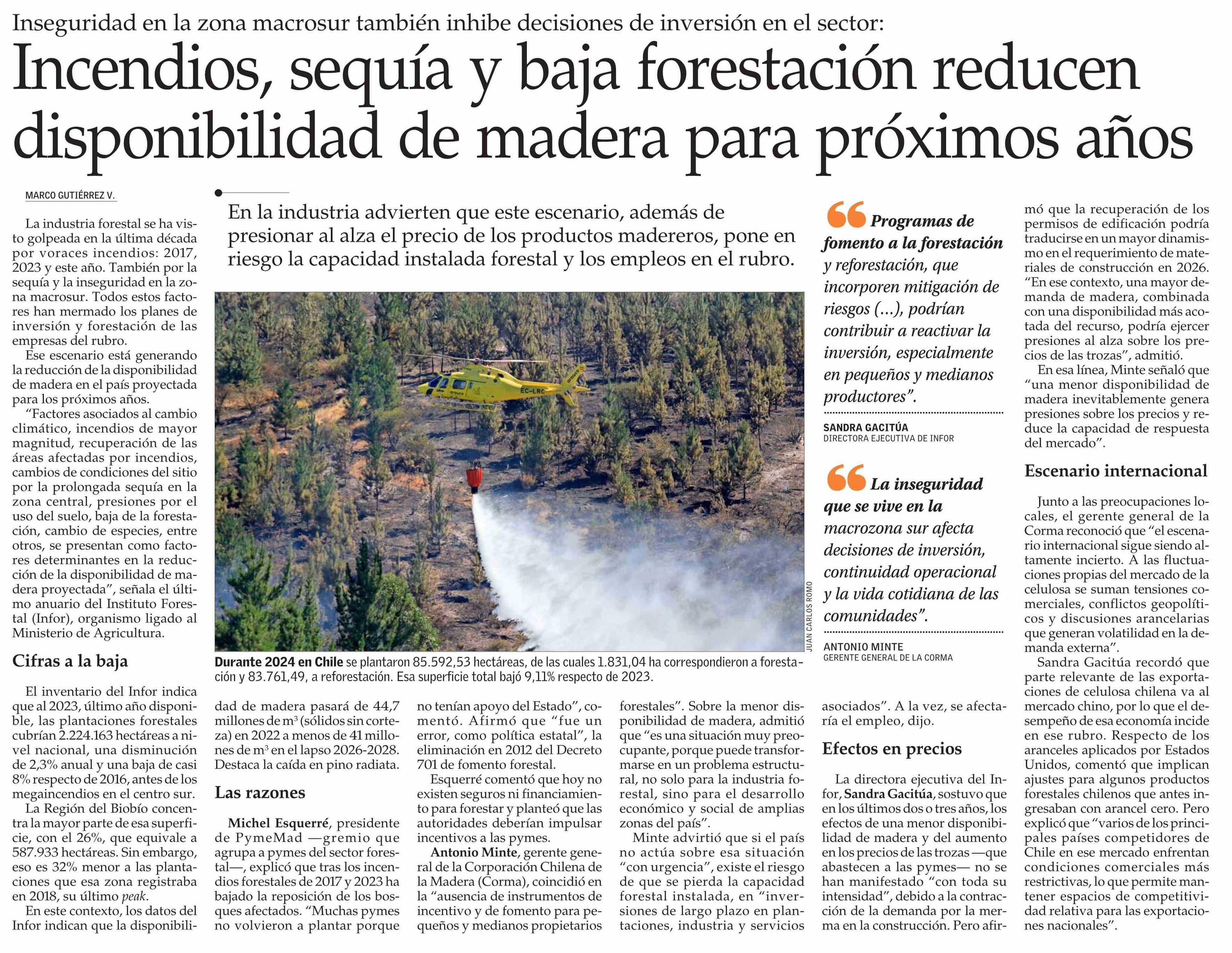 Título: Incendios, sequía y baja forestación reducen disponibilidad de madera para próximos años