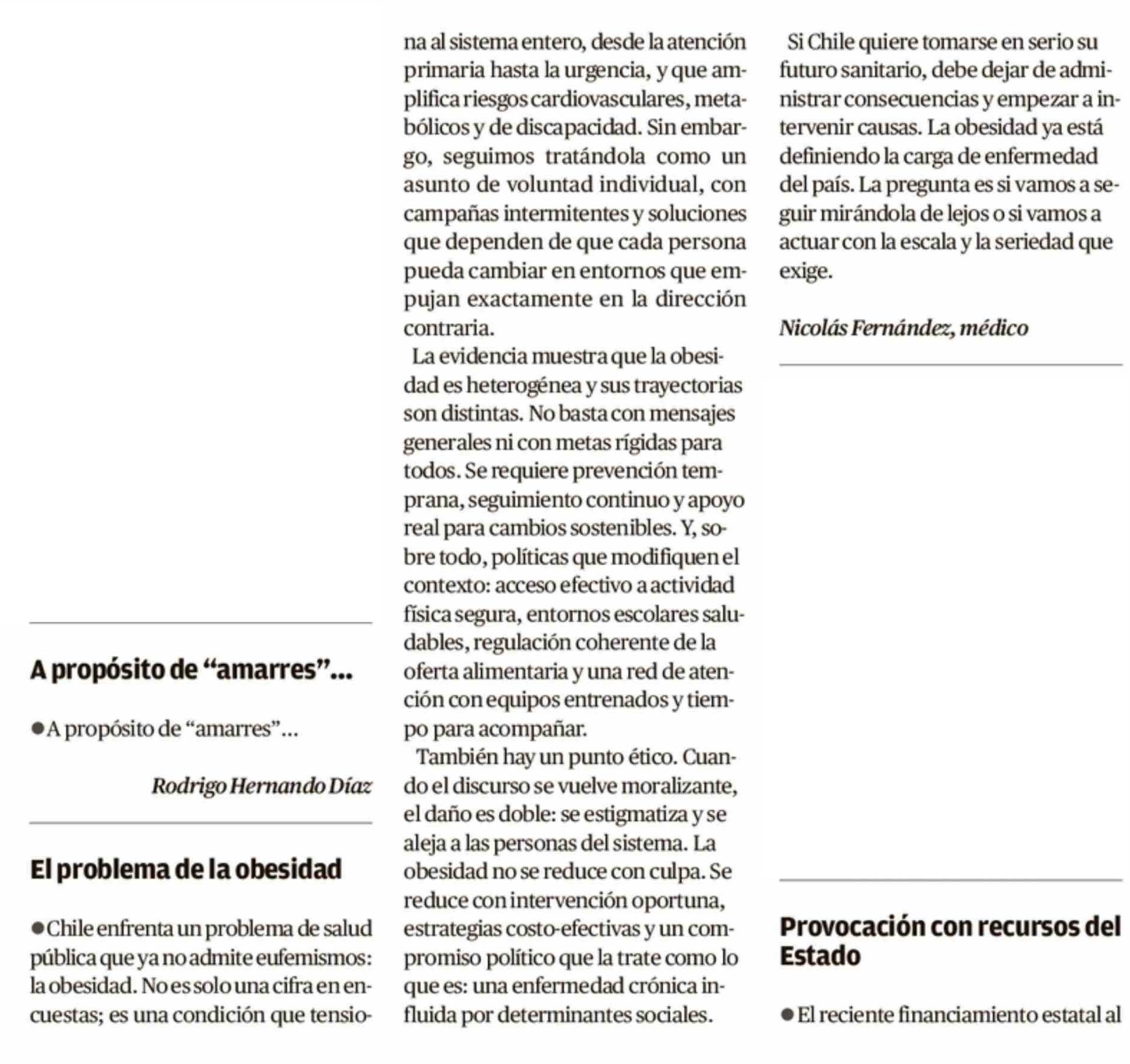 CARTAS: El problema de la obesidad 06-02-2026 El Austral de la Araucanía |