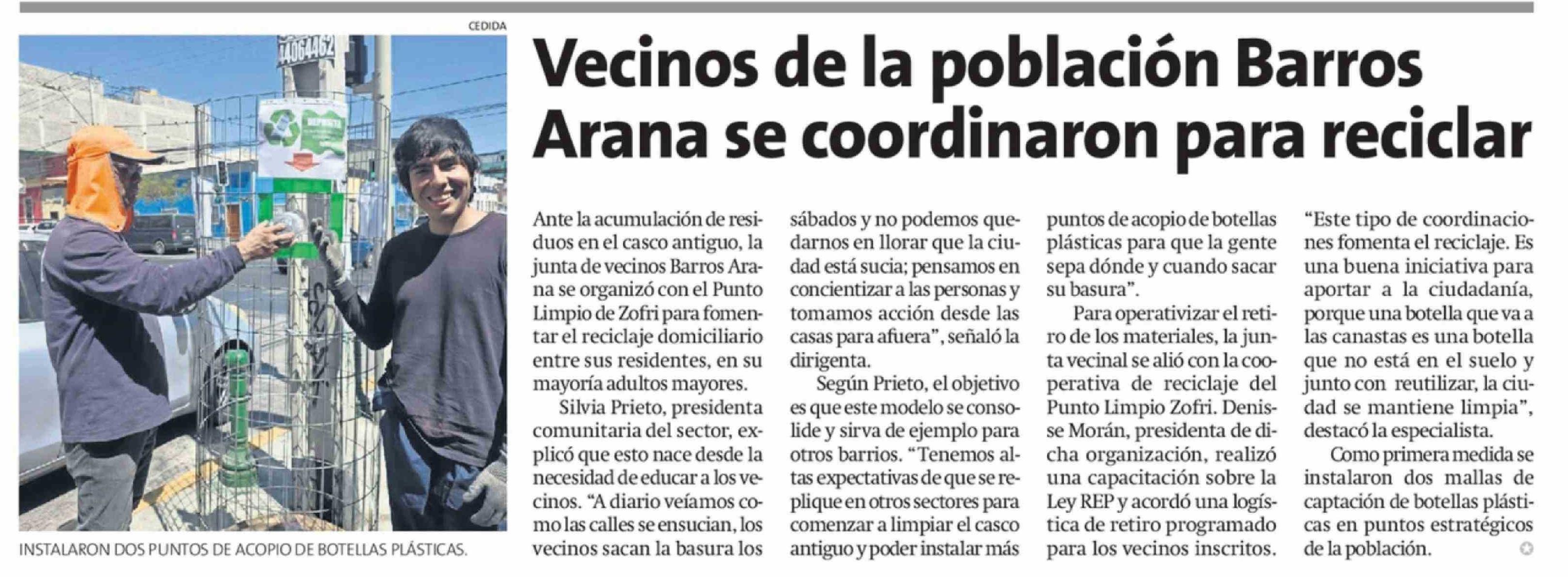 Vecinos de la población Barros Arana se coordinaron para reciclar 12-03-2026 La Estrella de Iquique |