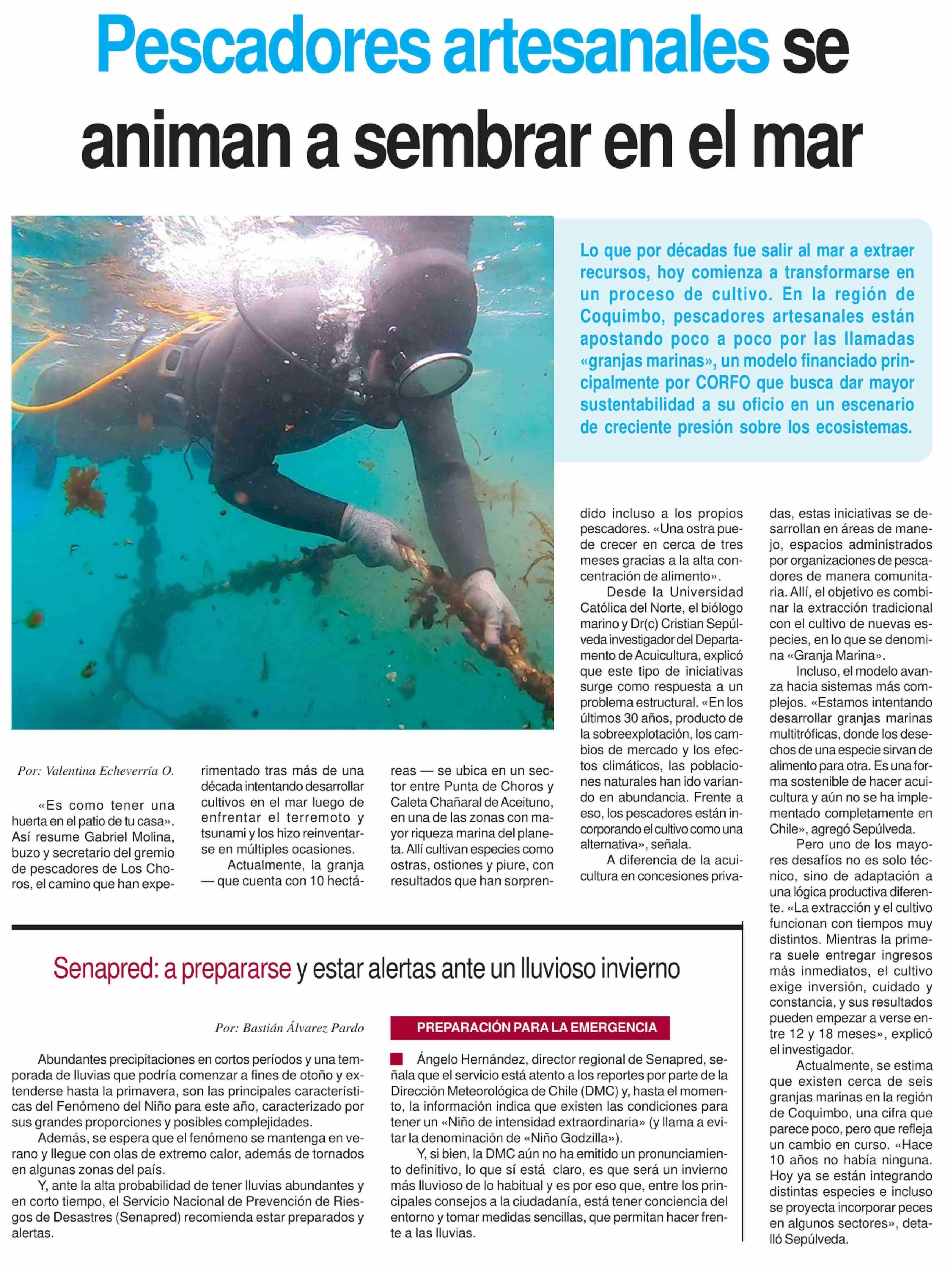 Pescadores artesanales se animan a sembrar en el mar 14-04-2026 Diario la Región |
