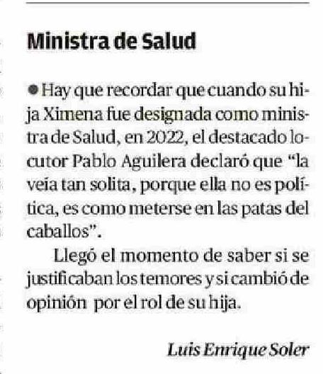 Título: Cartas: Ministra de Salud