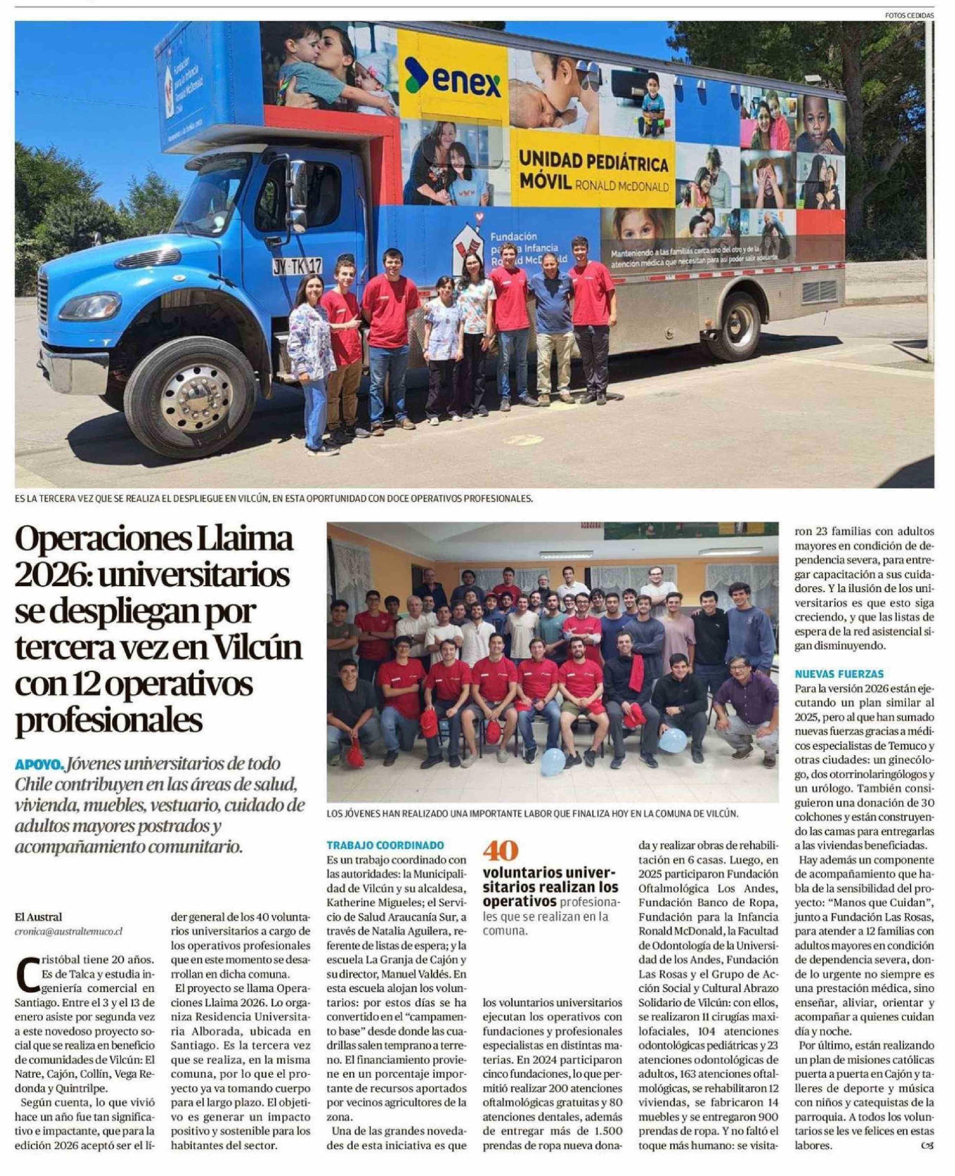 Título: Operaciones Llaima 2026: universitarios se despliegan por tercera vez en Vilcún con 12 operativos profesionales