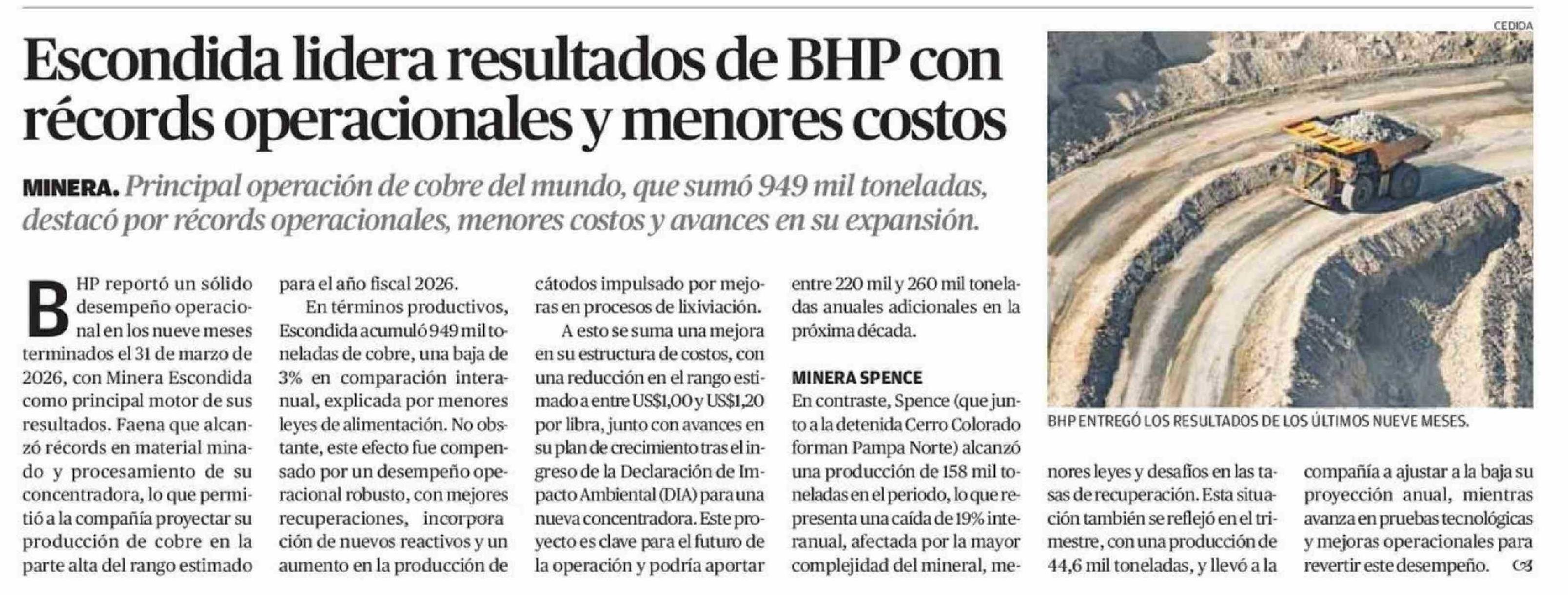 Título: Escondida lidera resultados de BHP con récords operacionales y menores costos