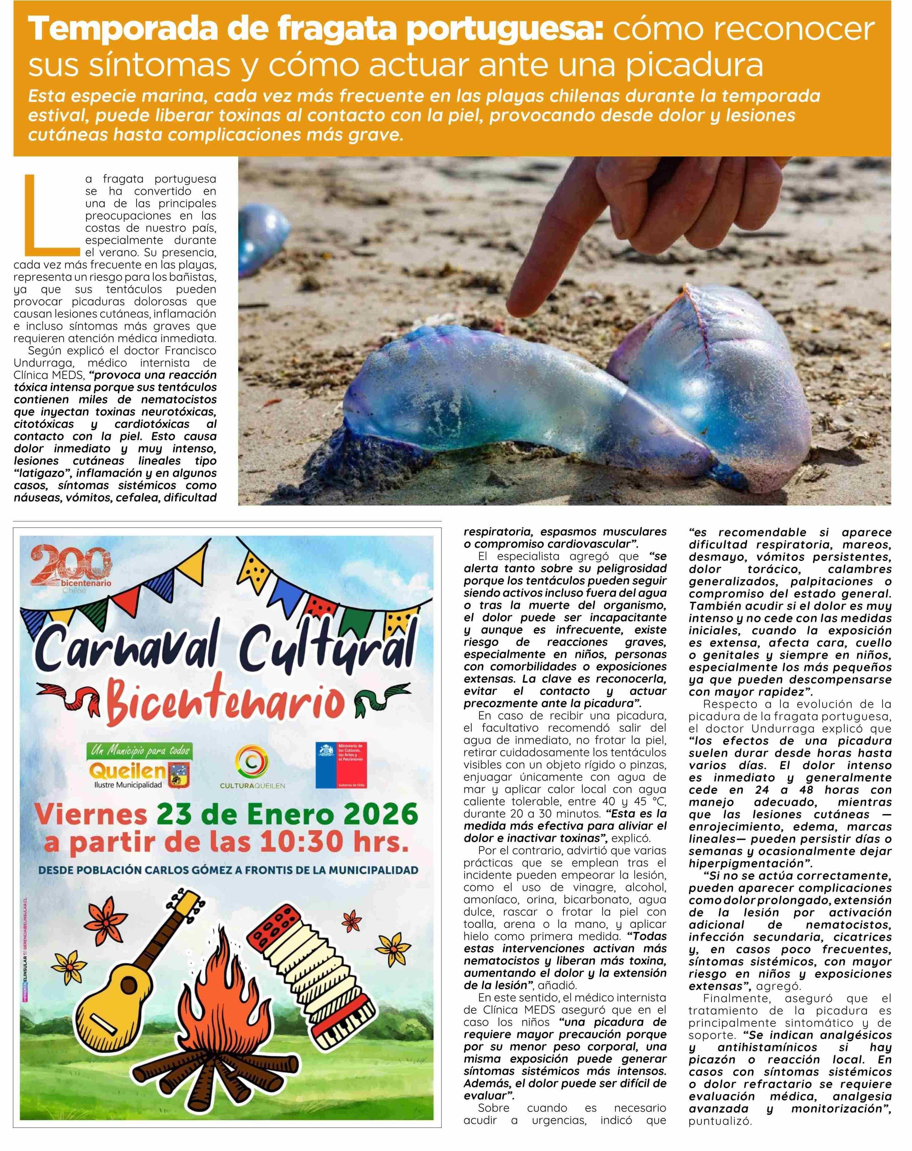 Temporada de fragata portuguesa: cómo reconocer sus síntomas y cómo actuar ante una picadura 23-01-2026 El Insular |