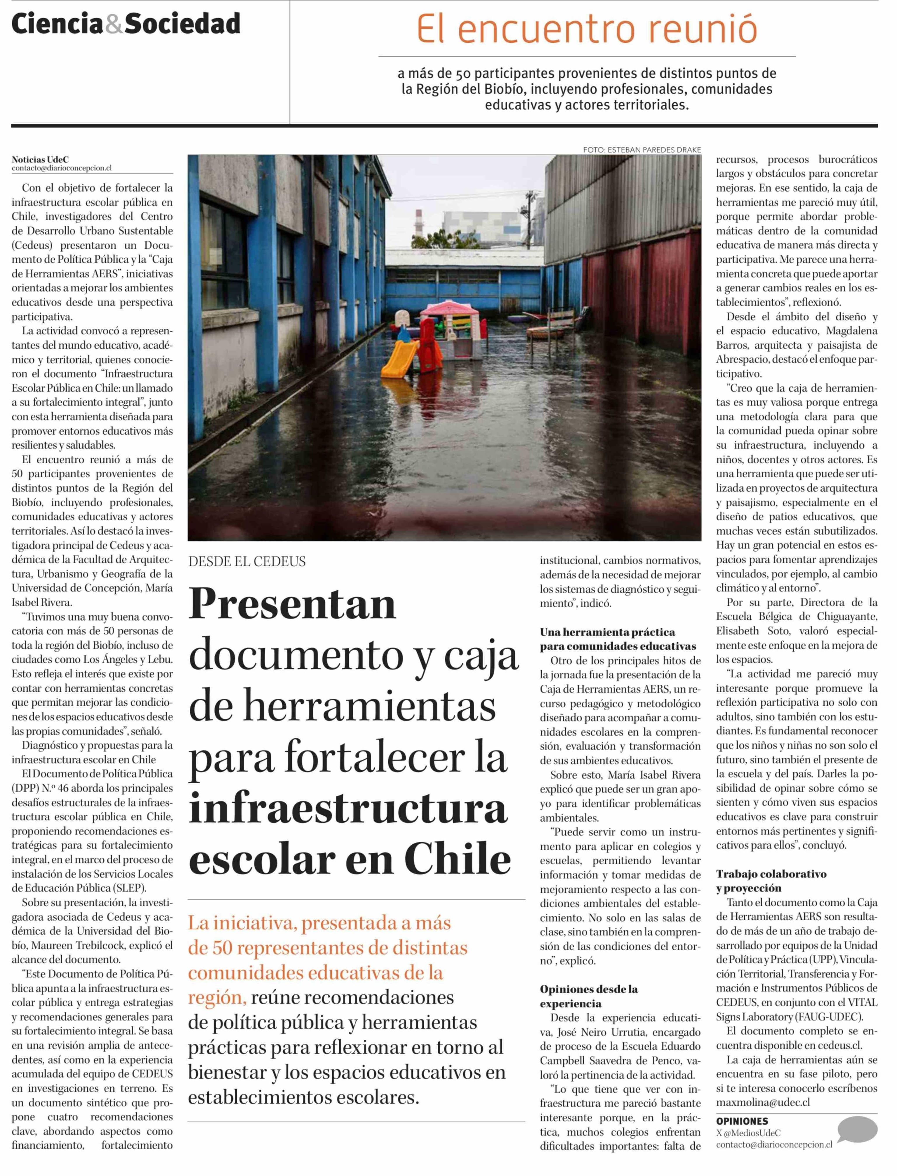 Presentan documento y caja de herramientas para fortalecer la infraestructura escolar en Chile 02-04-2026 Diario Concepción |
