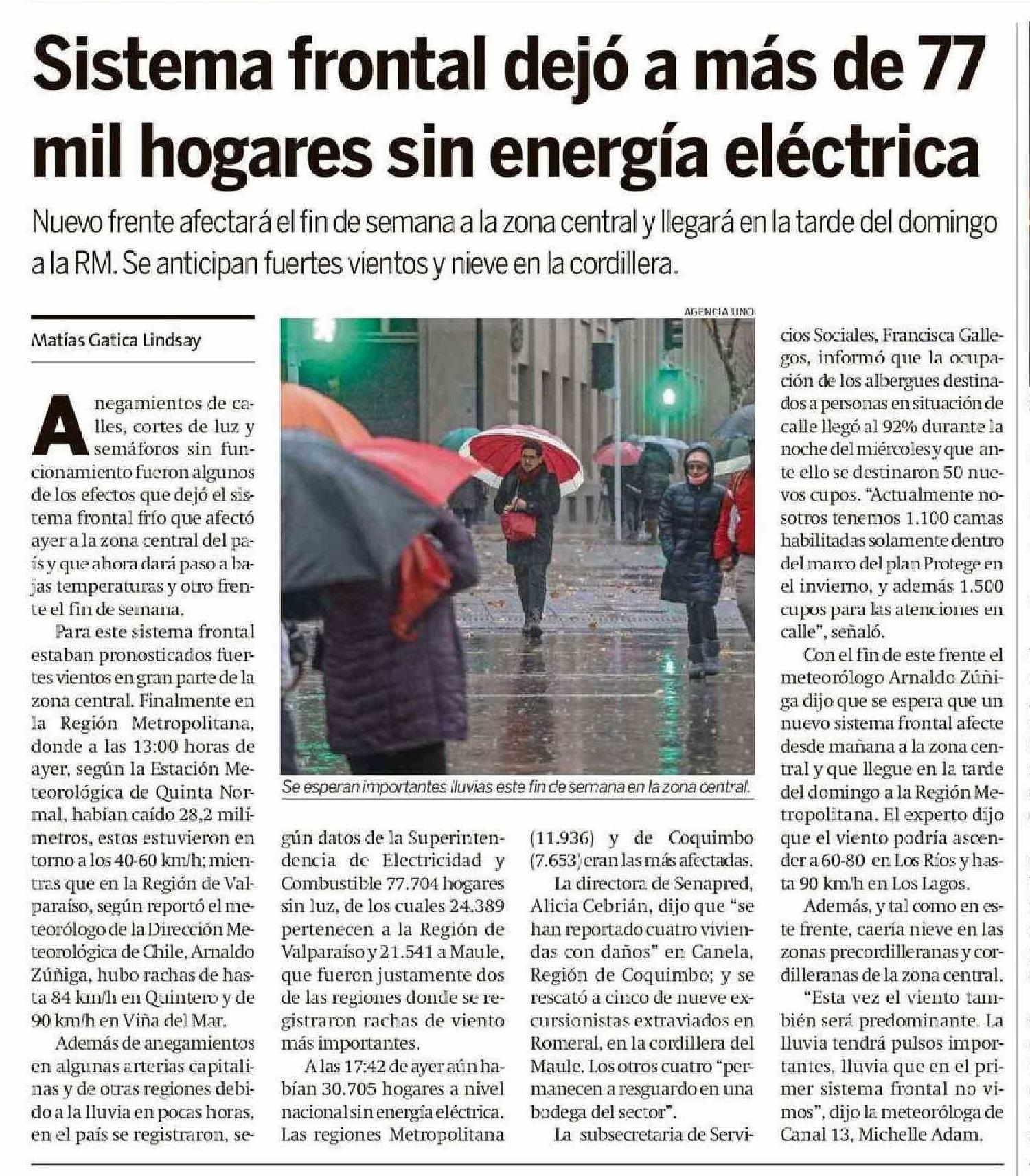 | Título: | Sistema frontal dejó a más de 77 mil hogares sin energía eléctrica |