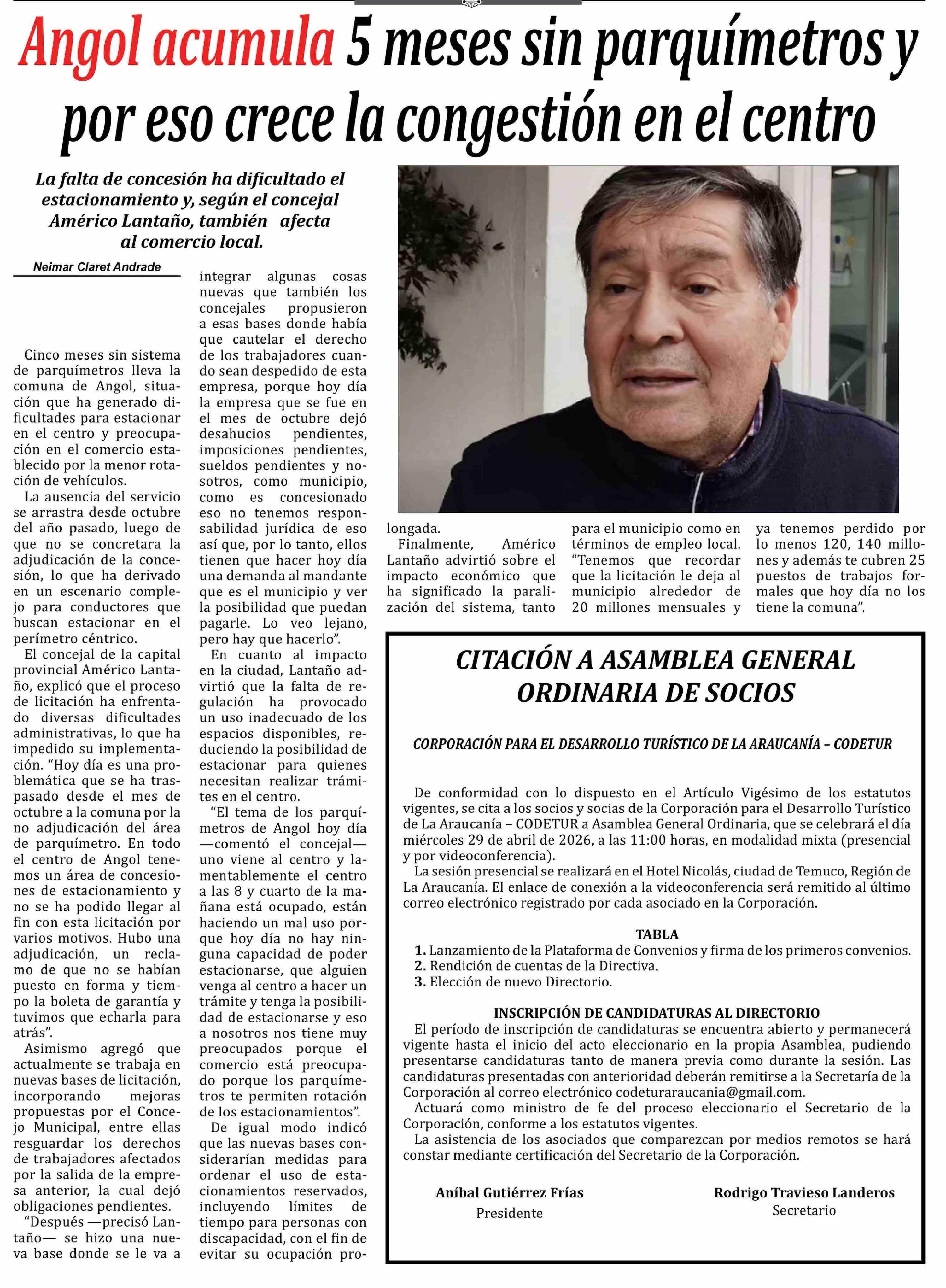 | Título: | Angol acumula 5 meses sin parquímetros y por eso crece la congestión en el centro |