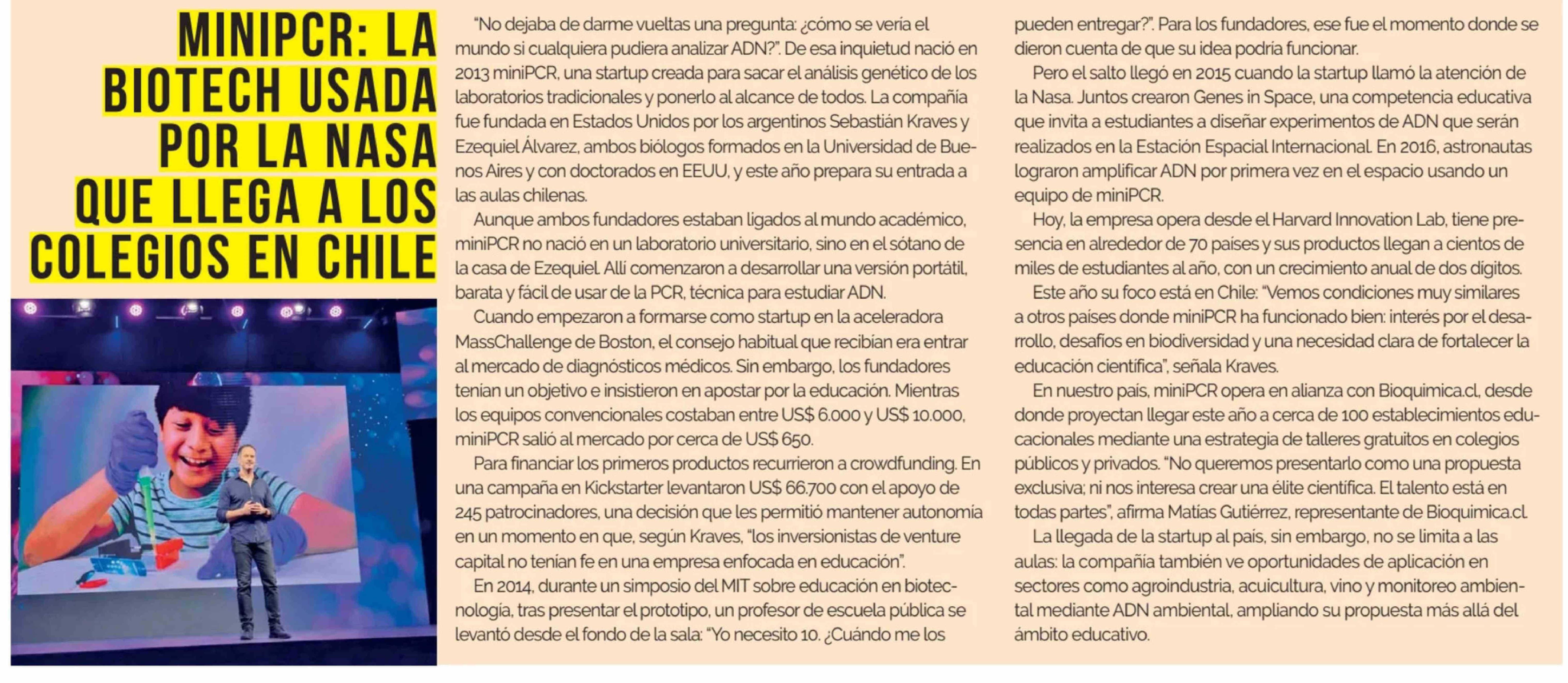 Título: MINIPCR: LA BIOTECH USADA POR LA NASA QUE LLEGA A LOS COLEGIOS EN CHILE