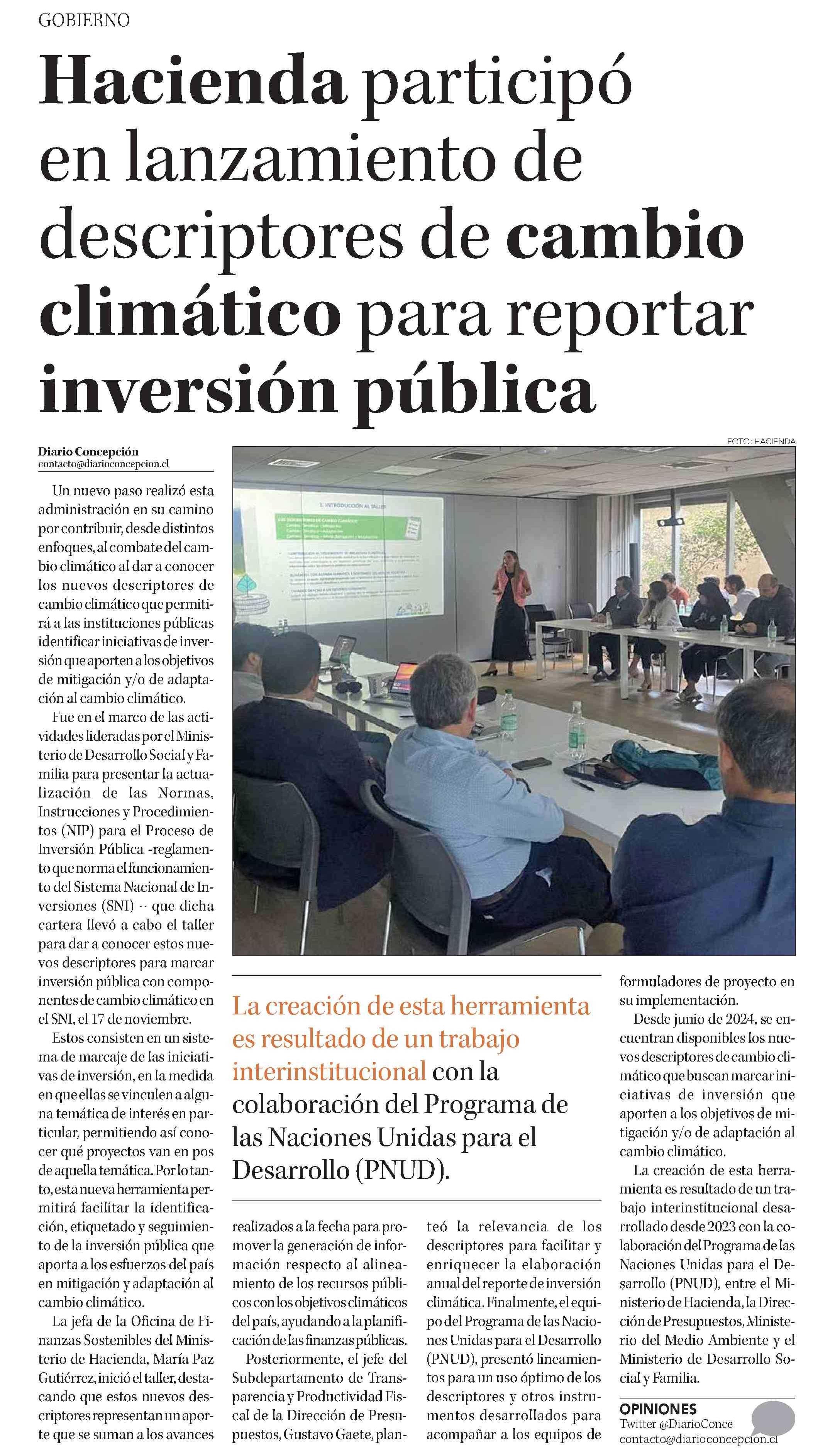 Hacienda participó en lanzamiento de descriptores de cambio climático para reportar inversión pública 02-01-2025 Diario Concepción |