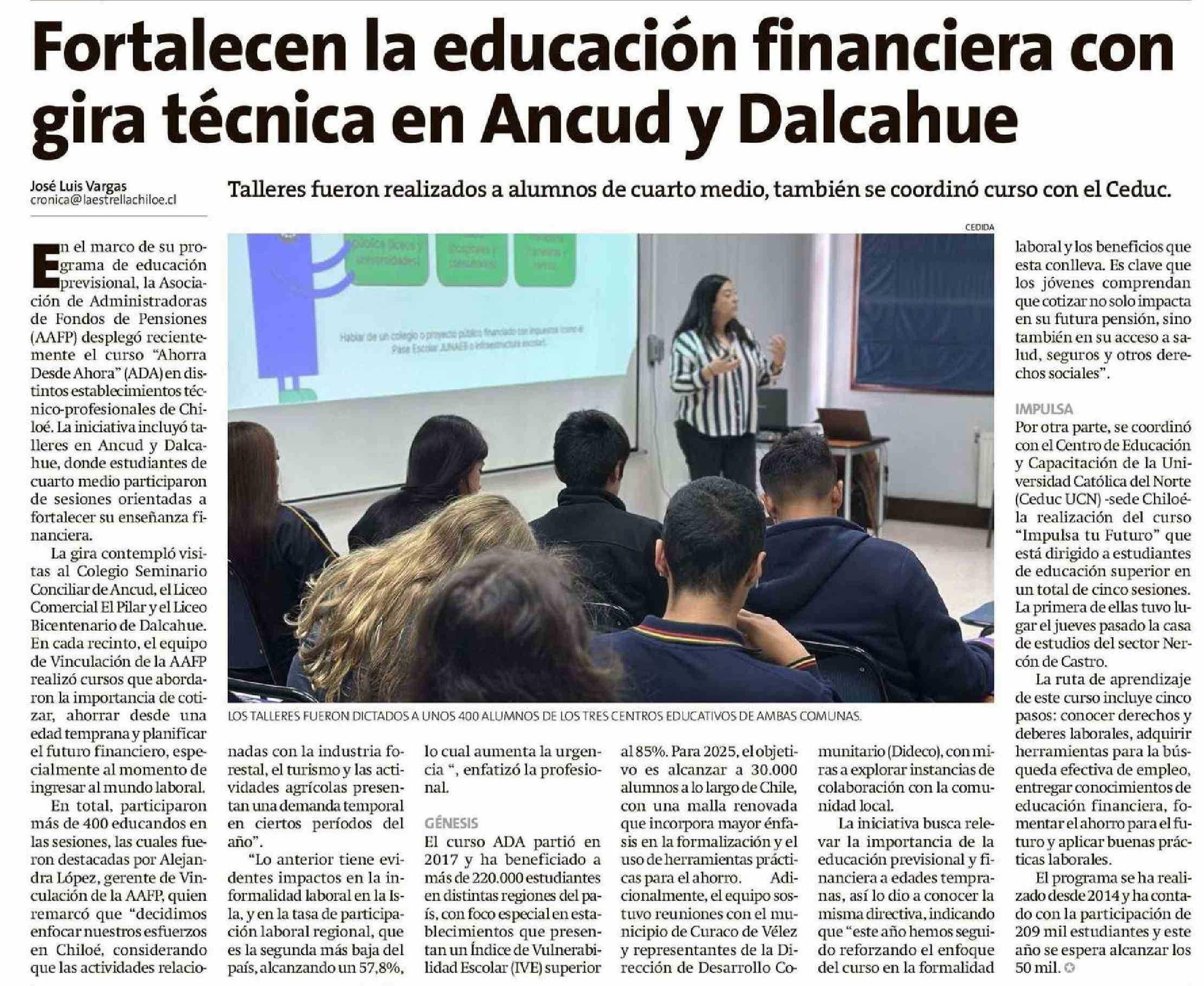 Fortalecen la educación financiera con gira técnica en Ancud y Dalcahue 14-04-2025 La Estrella de Chiloé |