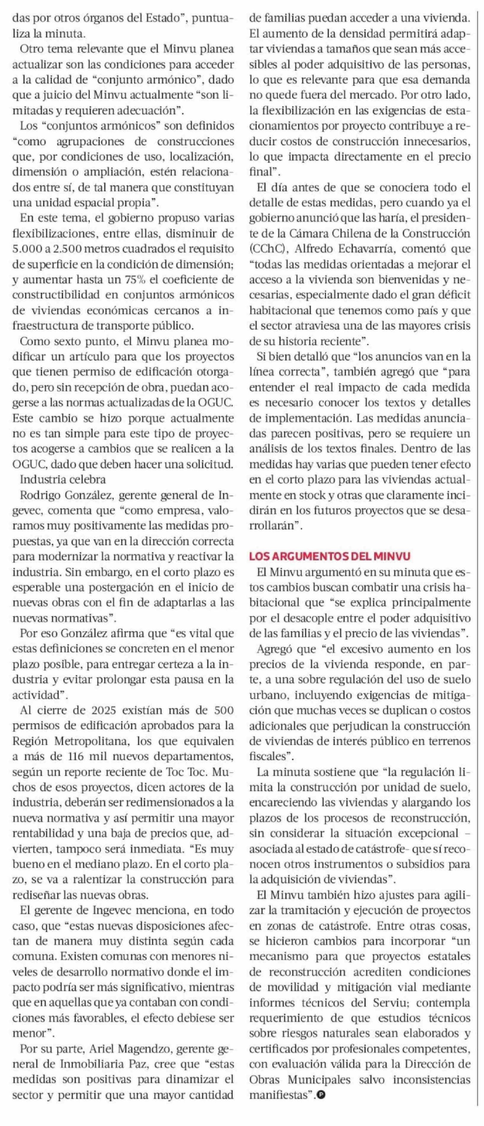Gobierno activa plan para desregular el suelo a partir de junio: baja densidad residencial y flexibiliza exigencia de estacionamientos 09-04-2026 La Tercera |