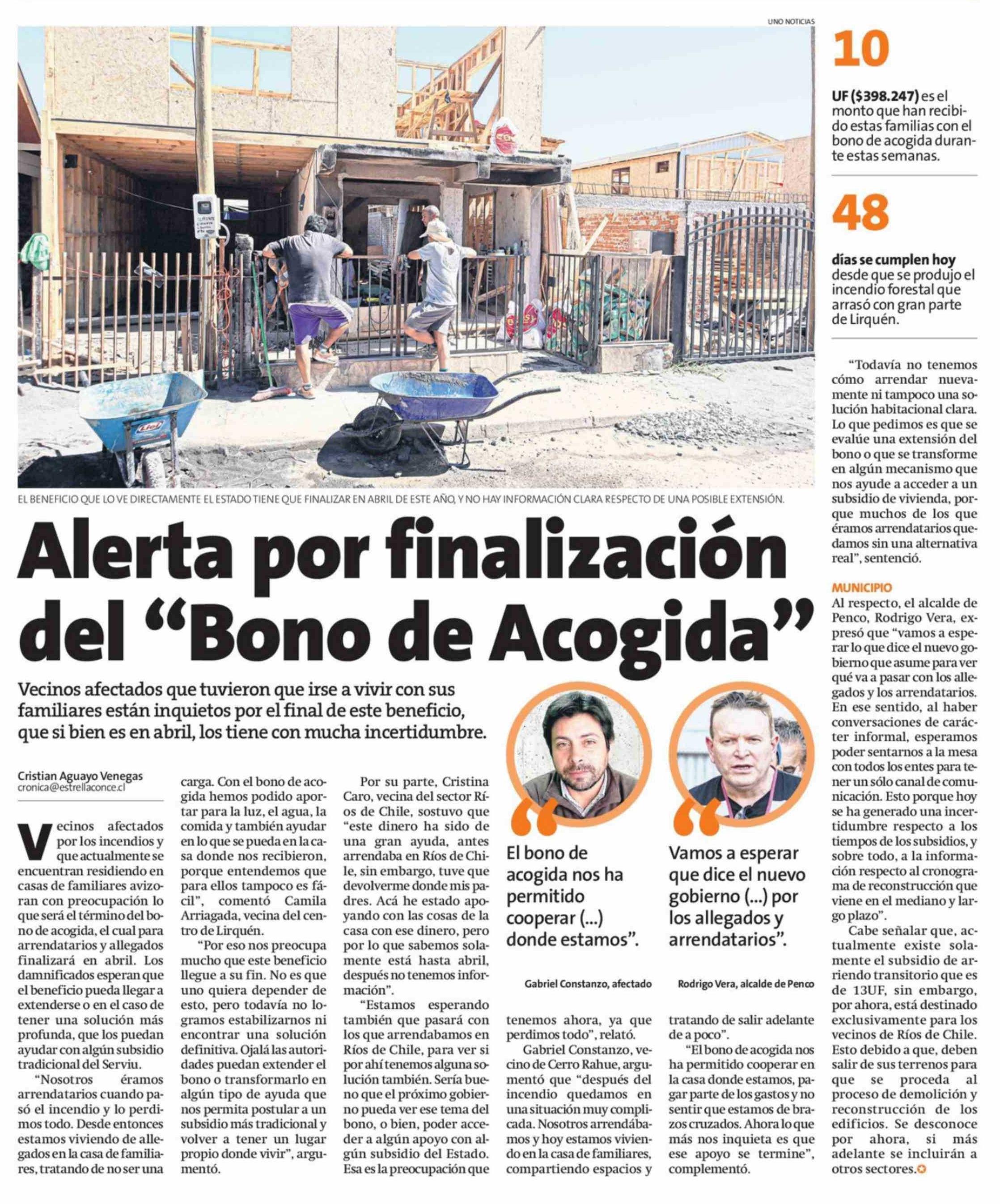 Alerta por finalización del "Bono de Acogida" 07-03-2026 La Estrella de Concepción |