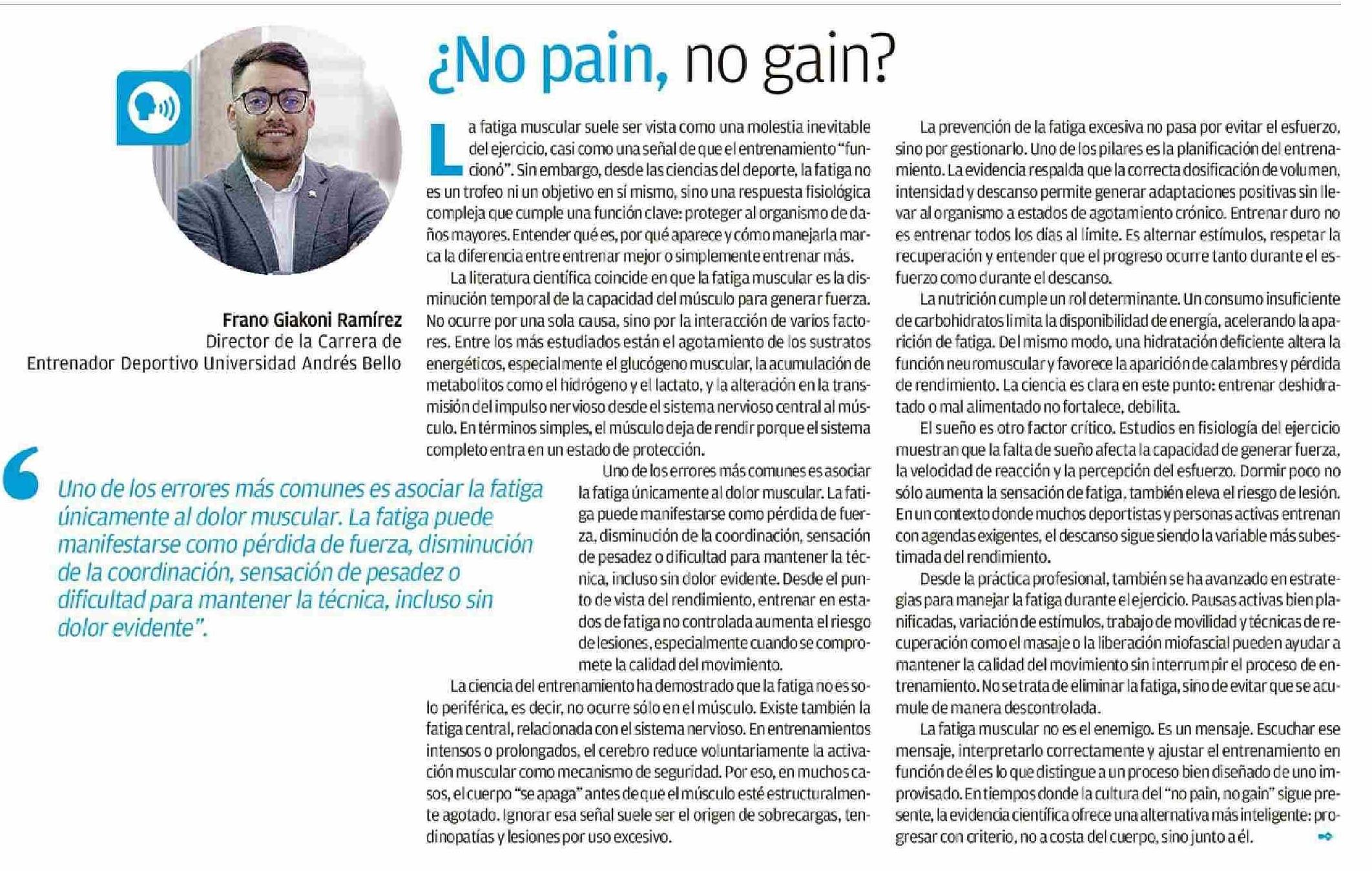 Columnas de Opinión: ¿No pain, no gain? 08-02-2026 El Mercurio de Valparaíso |